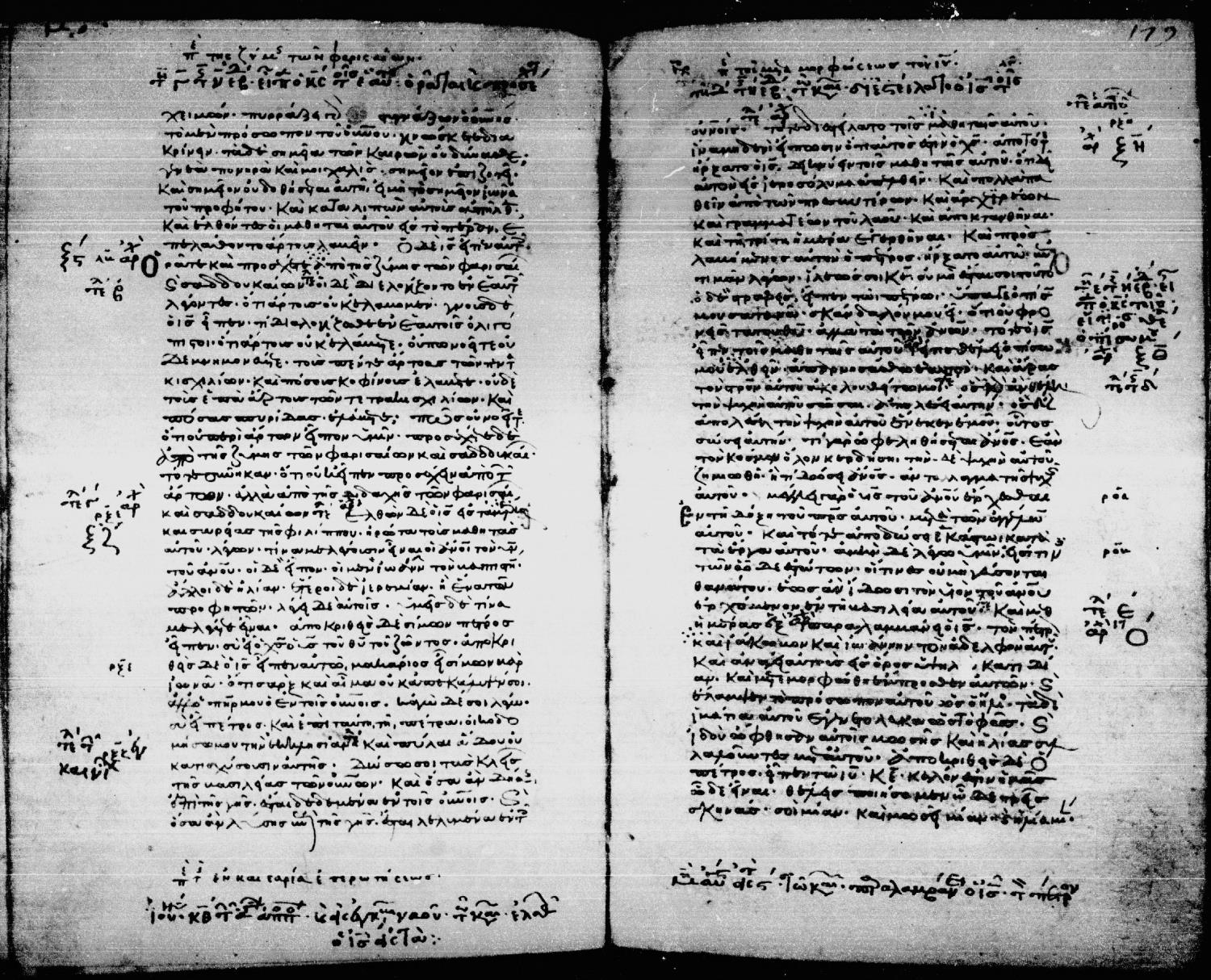 Twelfth century minuscule of the Gospels, Apostolos, and Paul on parchment; 297 leaves, single column, 38 lines per column. Digital images are from microfilm.