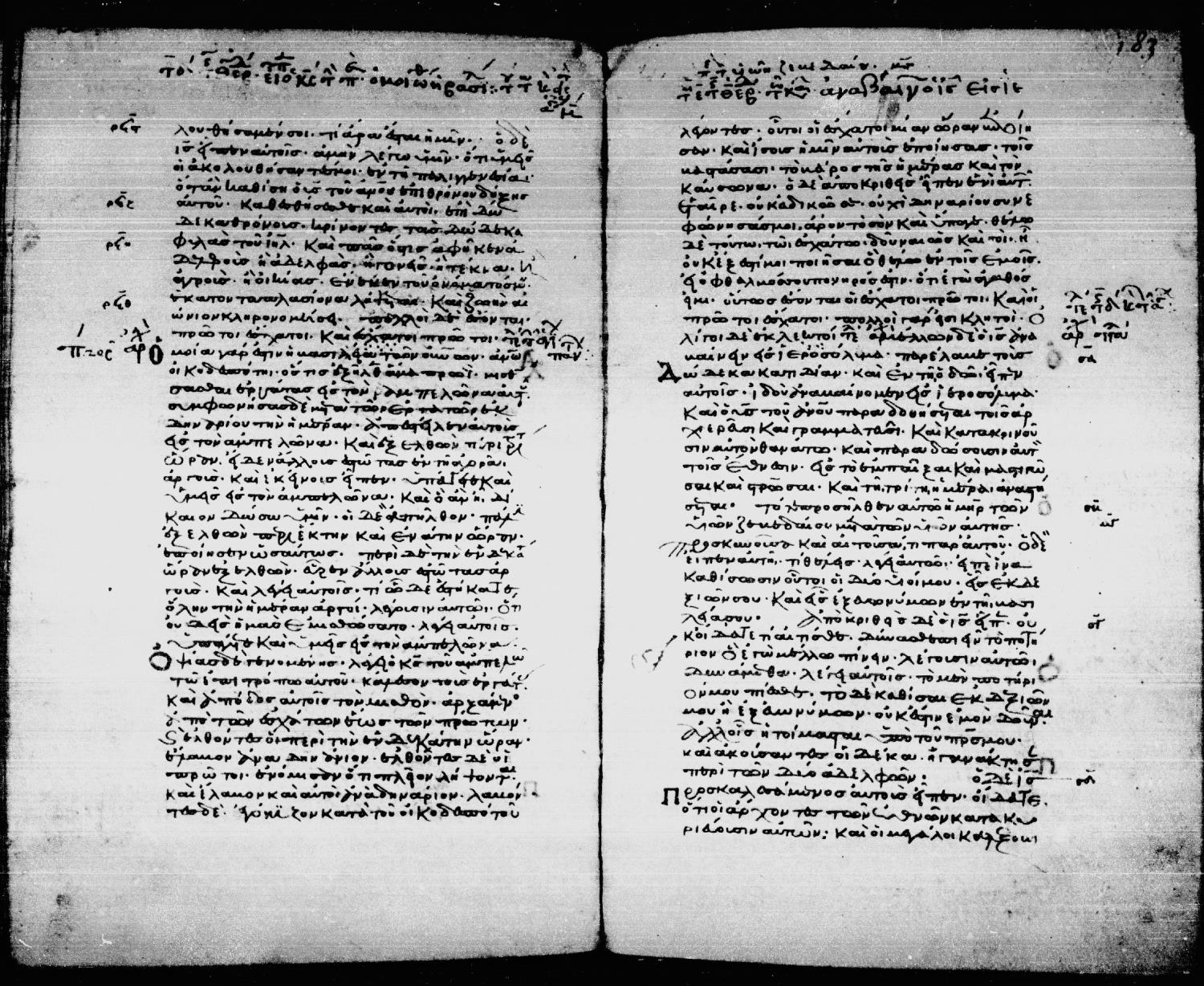Twelfth century minuscule of the Gospels, Apostolos, and Paul on parchment; 297 leaves, single column, 38 lines per column. Digital images are from microfilm.