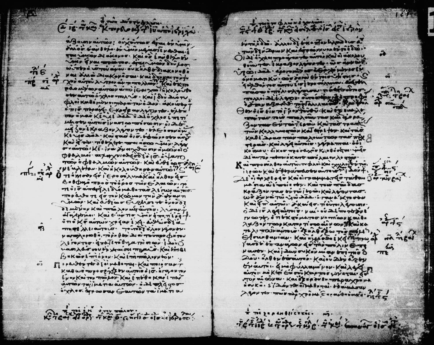 Twelfth century minuscule of the Gospels, Apostolos, and Paul on parchment; 297 leaves, single column, 38 lines per column. Digital images are from microfilm.