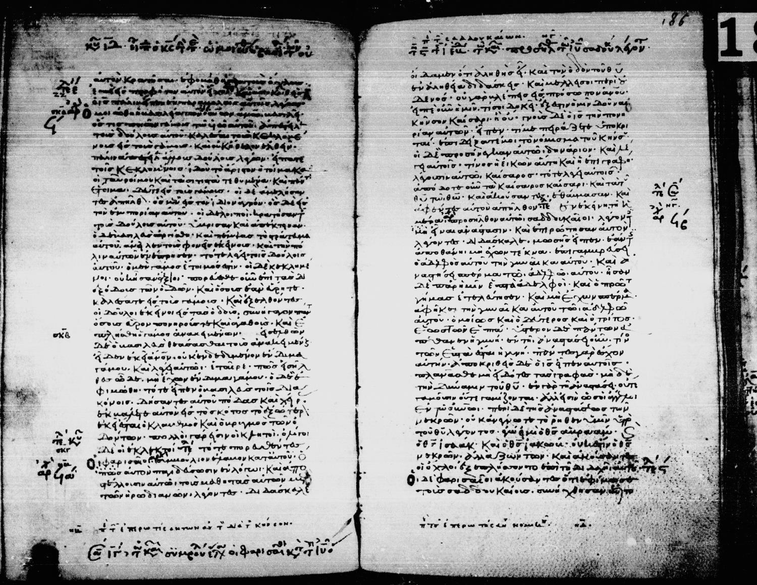 Twelfth century minuscule of the Gospels, Apostolos, and Paul on parchment; 297 leaves, single column, 38 lines per column. Digital images are from microfilm.