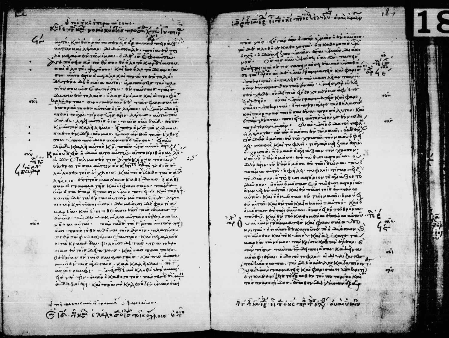 Twelfth century minuscule of the Gospels, Apostolos, and Paul on parchment; 297 leaves, single column, 38 lines per column. Digital images are from microfilm.