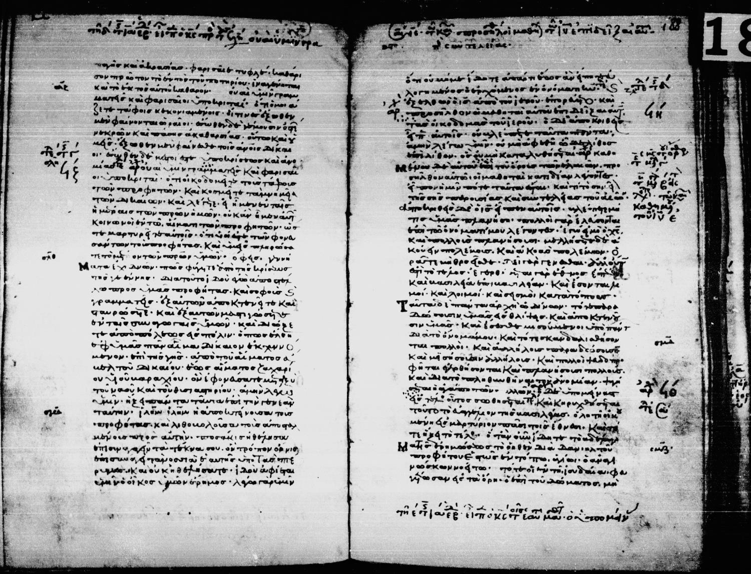 Twelfth century minuscule of the Gospels, Apostolos, and Paul on parchment; 297 leaves, single column, 38 lines per column. Digital images are from microfilm.