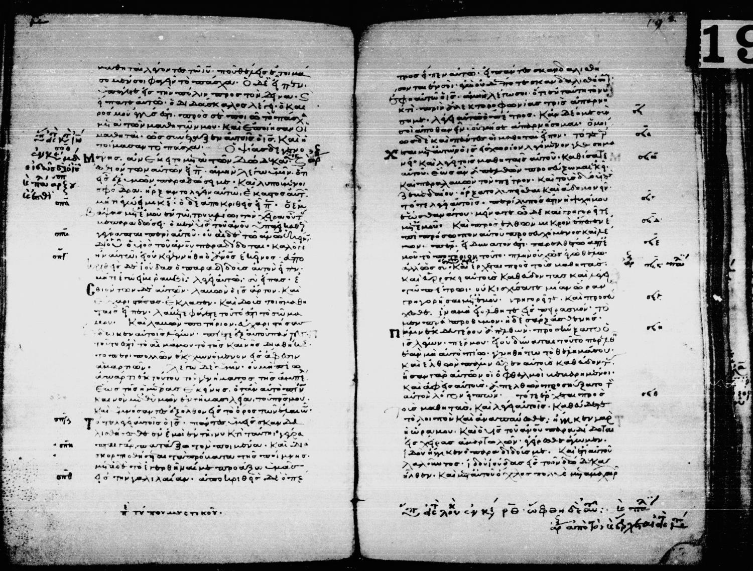Twelfth century minuscule of the Gospels, Apostolos, and Paul on parchment; 297 leaves, single column, 38 lines per column. Digital images are from microfilm.