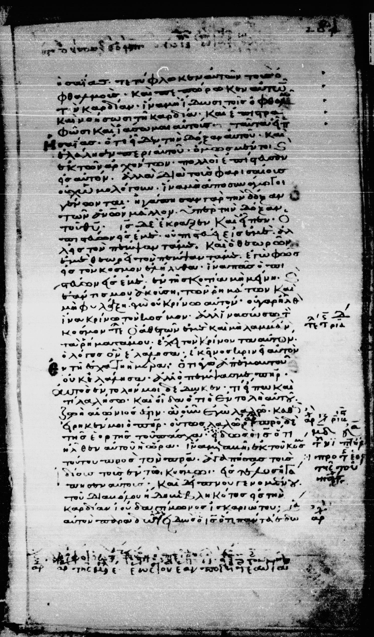 Twelfth century minuscule of the Gospels, Apostolos, and Paul on parchment; 297 leaves, single column, 38 lines per column. Digital images are from microfilm.