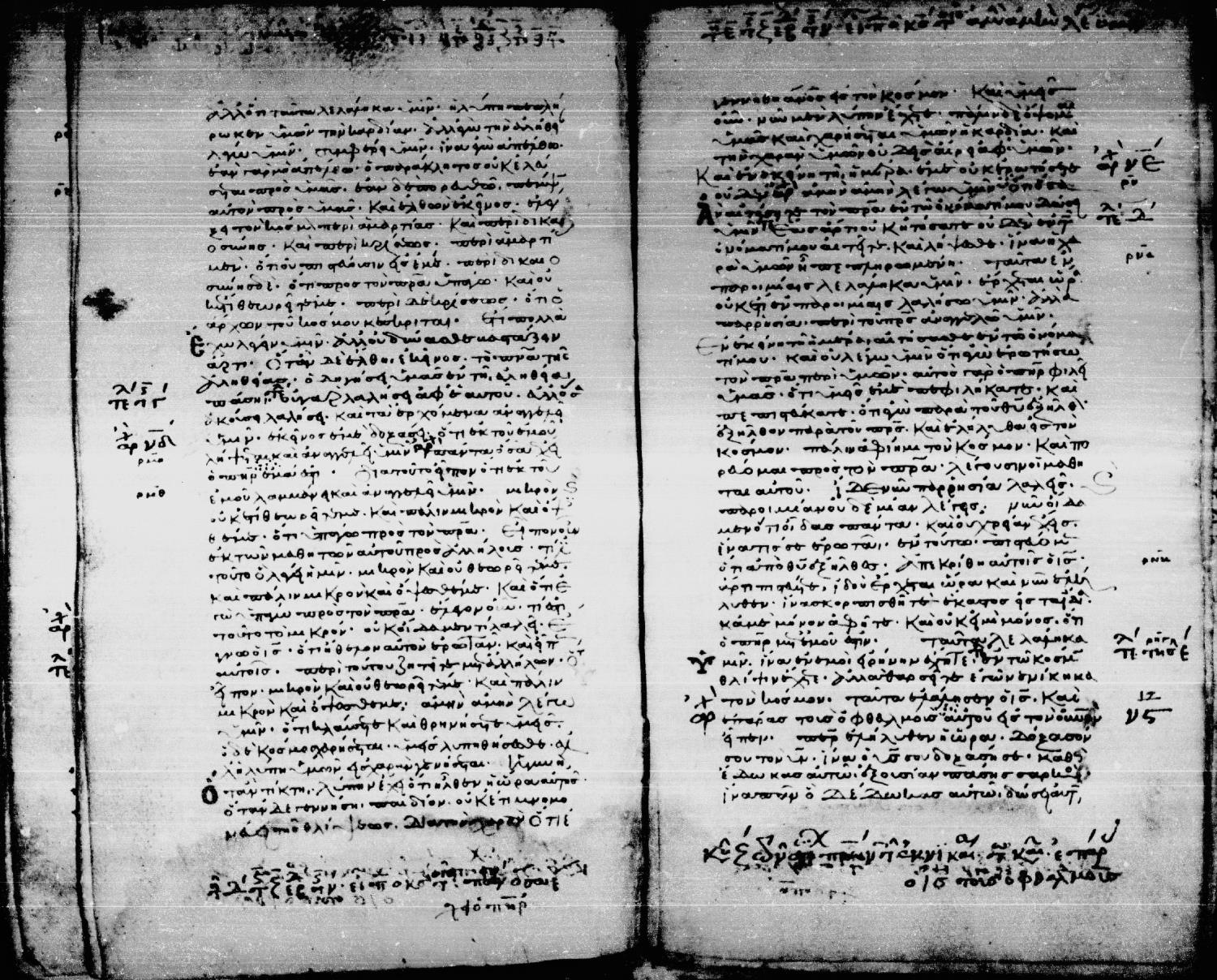 Twelfth century minuscule of the Gospels, Apostolos, and Paul on parchment; 297 leaves, single column, 38 lines per column. Digital images are from microfilm.