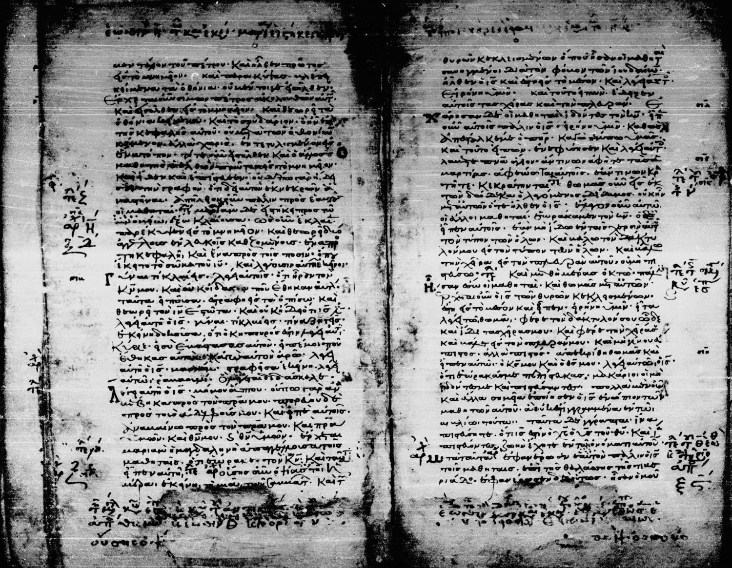 Twelfth century minuscule of the Gospels, Apostolos, and Paul on parchment; 297 leaves, single column, 38 lines per column. Digital images are from microfilm.