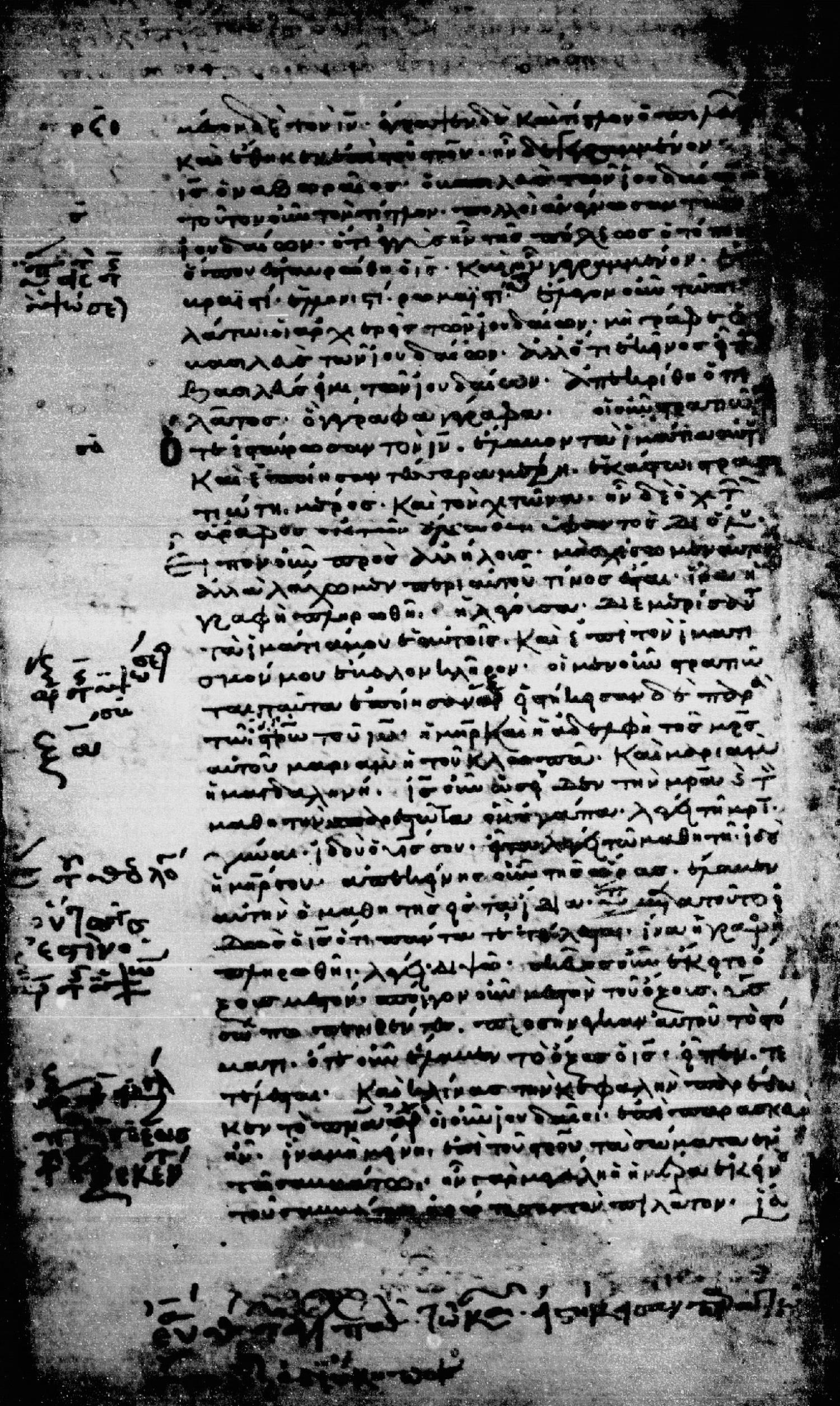 Twelfth century minuscule of the Gospels, Apostolos, and Paul on parchment; 297 leaves, single column, 38 lines per column. Digital images are from microfilm.