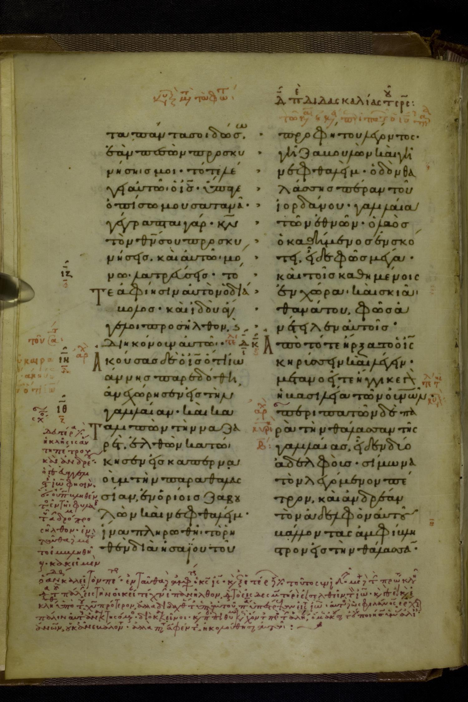 Eleventh century manuscript of the Gospels on parchment; 230 leaves, 2 columns, 25 lines per column. By agreement with the owners of the manuscript, the images posted online are 100dpi. For recent digital images, visit BML Online.