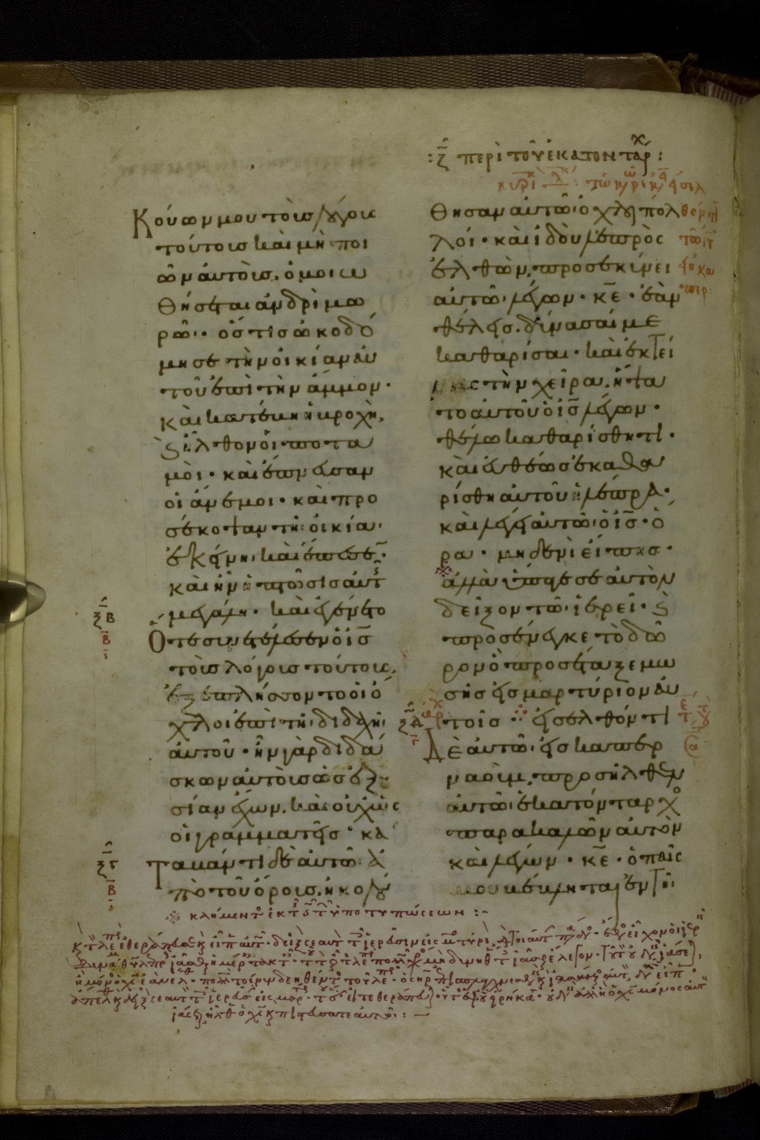 Eleventh century manuscript of the Gospels on parchment; 230 leaves, 2 columns, 25 lines per column. By agreement with the owners of the manuscript, the images posted online are 100dpi. For recent digital images, visit BML Online.