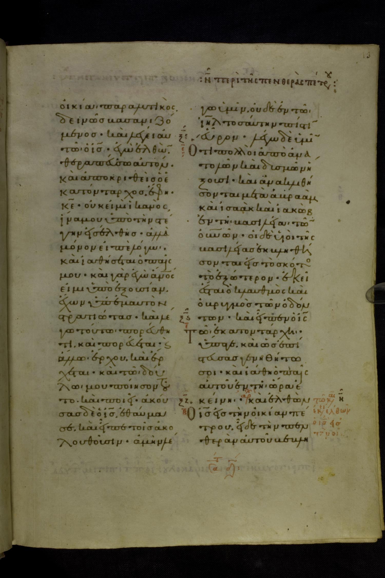 Eleventh century manuscript of the Gospels on parchment; 230 leaves, 2 columns, 25 lines per column. By agreement with the owners of the manuscript, the images posted online are 100dpi. For recent digital images, visit BML Online.