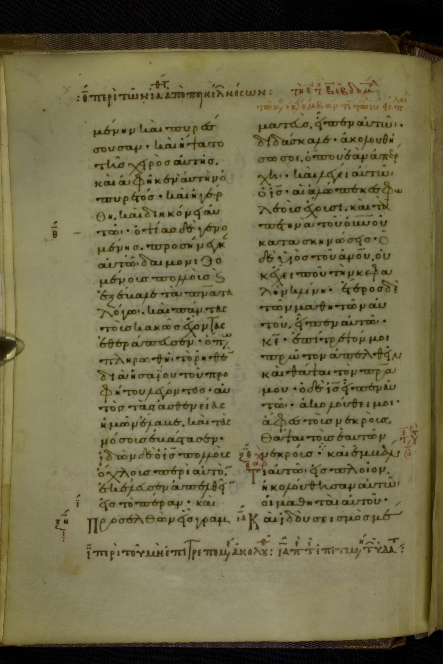 Eleventh century manuscript of the Gospels on parchment; 230 leaves, 2 columns, 25 lines per column. By agreement with the owners of the manuscript, the images posted online are 100dpi. For recent digital images, visit BML Online.