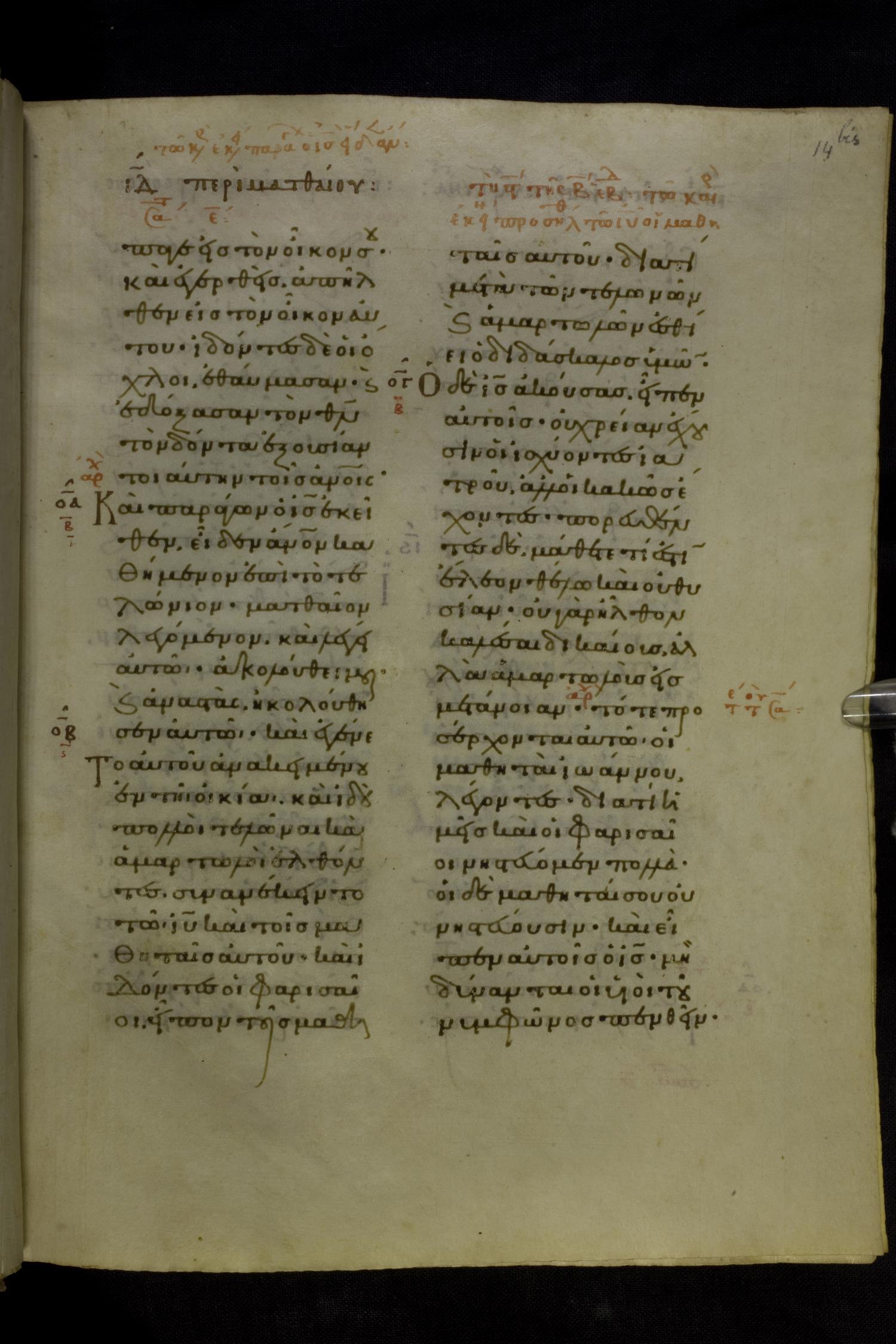 Eleventh century manuscript of the Gospels on parchment; 230 leaves, 2 columns, 25 lines per column. By agreement with the owners of the manuscript, the images posted online are 100dpi. For recent digital images, visit BML Online.