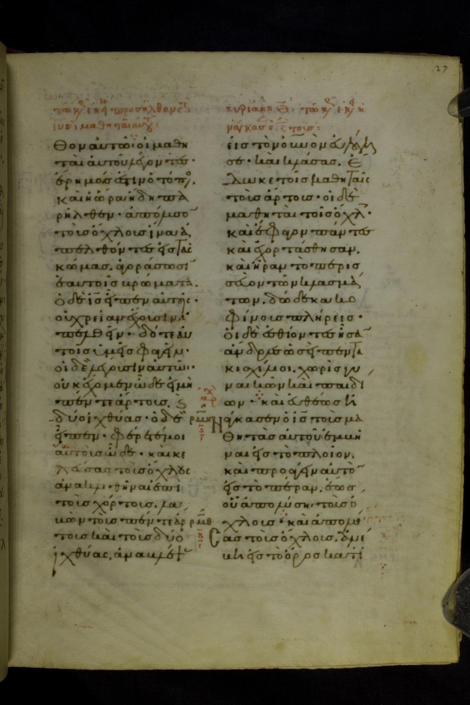 Eleventh century manuscript of the Gospels on parchment; 230 leaves, 2 columns, 25 lines per column. By agreement with the owners of the manuscript, the images posted online are 100dpi. For recent digital images, visit BML Online.