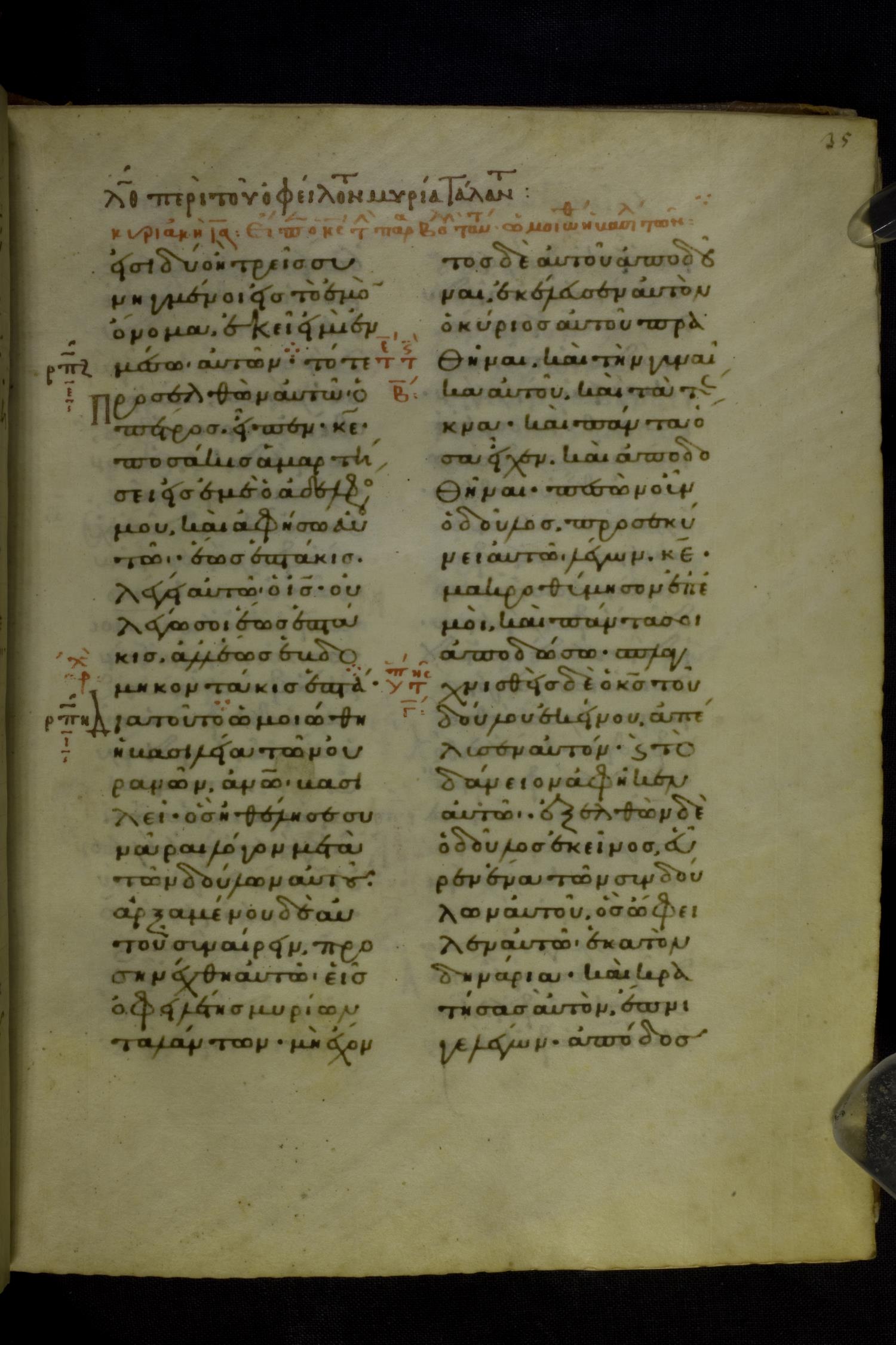 Eleventh century manuscript of the Gospels on parchment; 230 leaves, 2 columns, 25 lines per column. By agreement with the owners of the manuscript, the images posted online are 100dpi. For recent digital images, visit BML Online.