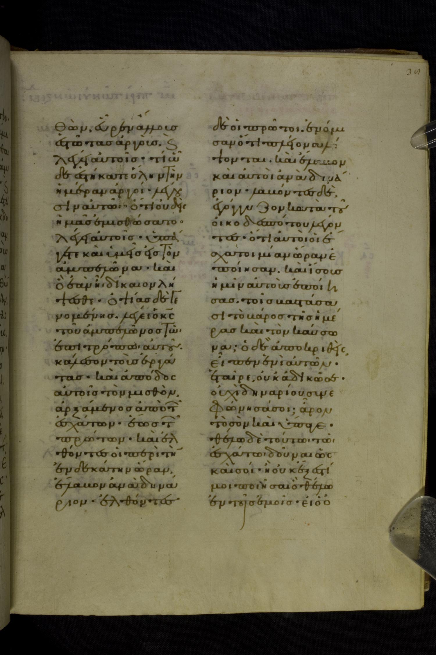 Eleventh century manuscript of the Gospels on parchment; 230 leaves, 2 columns, 25 lines per column. By agreement with the owners of the manuscript, the images posted online are 100dpi. For recent digital images, visit BML Online.