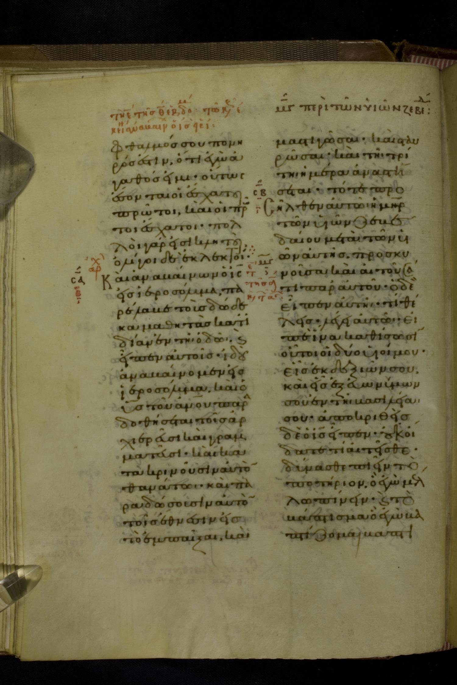 Eleventh century manuscript of the Gospels on parchment; 230 leaves, 2 columns, 25 lines per column. By agreement with the owners of the manuscript, the images posted online are 100dpi. For recent digital images, visit BML Online.