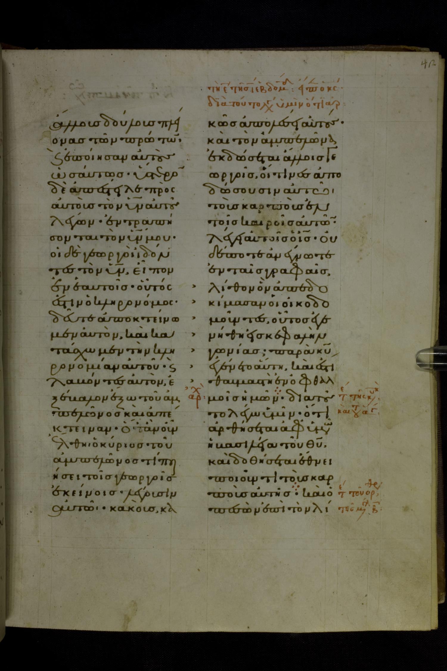 Eleventh century manuscript of the Gospels on parchment; 230 leaves, 2 columns, 25 lines per column. By agreement with the owners of the manuscript, the images posted online are 100dpi. For recent digital images, visit BML Online.