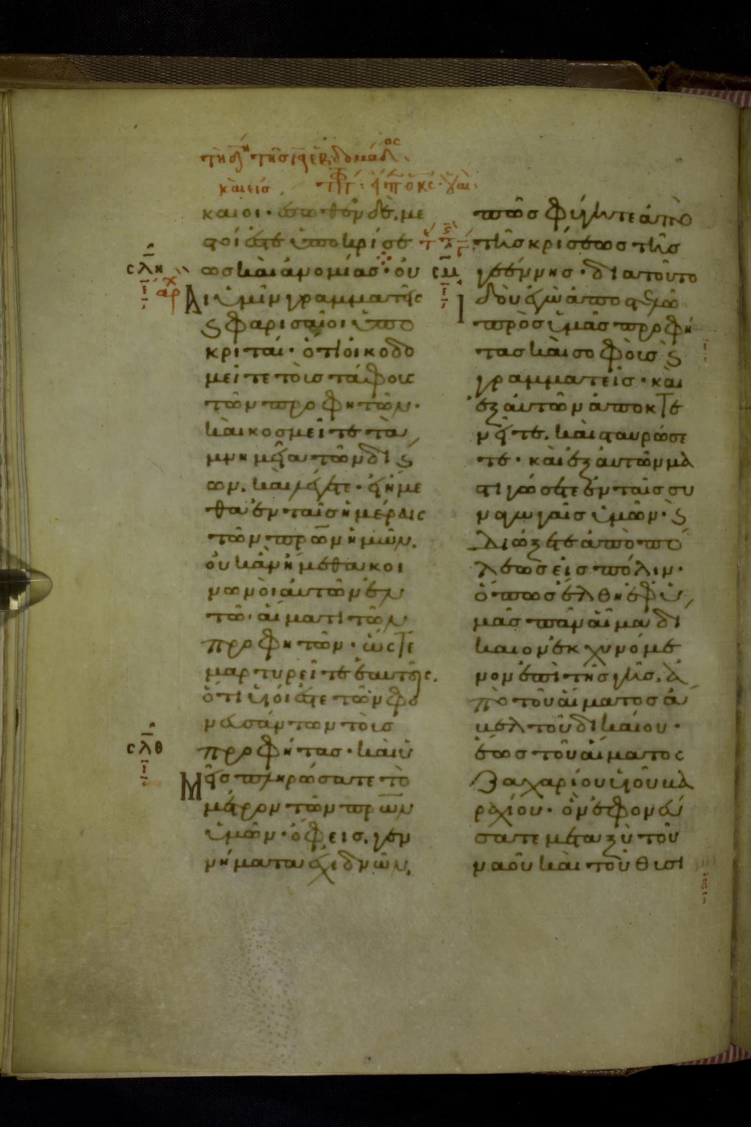 Eleventh century manuscript of the Gospels on parchment; 230 leaves, 2 columns, 25 lines per column. By agreement with the owners of the manuscript, the images posted online are 100dpi. For recent digital images, visit BML Online.