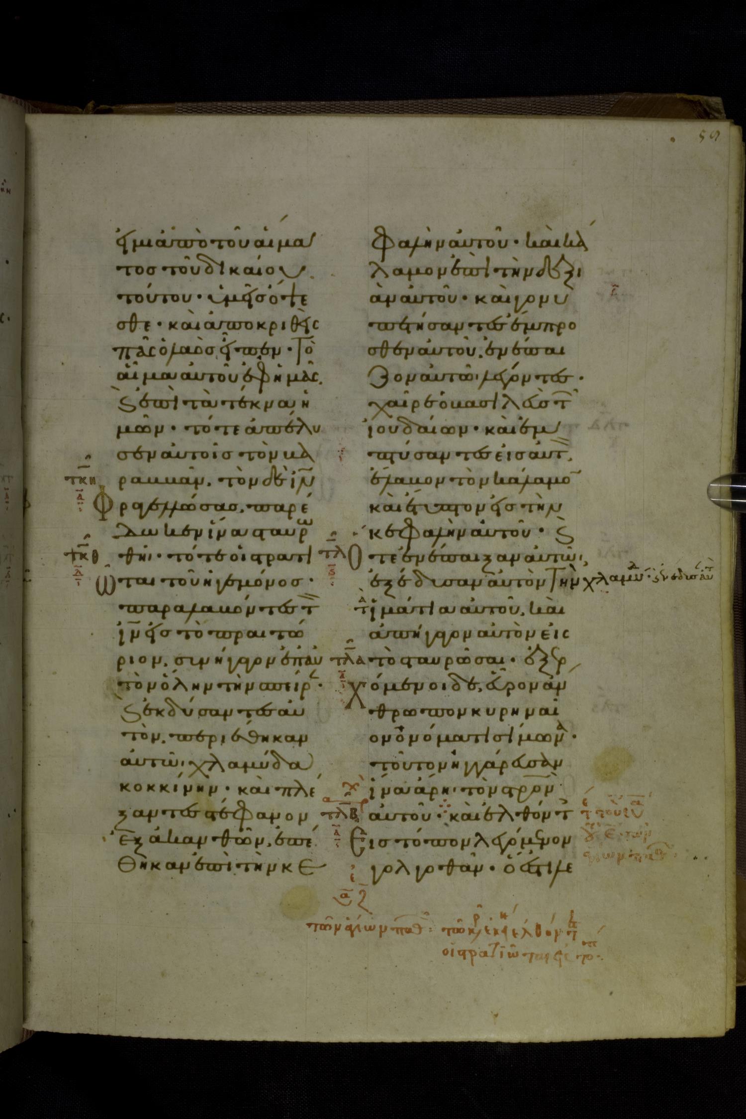 Eleventh century manuscript of the Gospels on parchment; 230 leaves, 2 columns, 25 lines per column. By agreement with the owners of the manuscript, the images posted online are 100dpi. For recent digital images, visit BML Online.