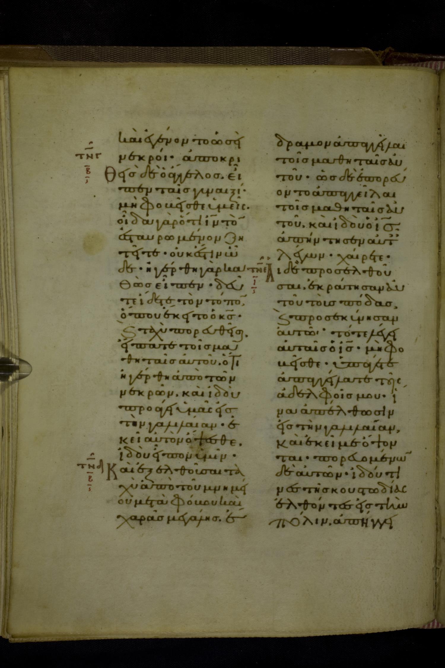 Eleventh century manuscript of the Gospels on parchment; 230 leaves, 2 columns, 25 lines per column. By agreement with the owners of the manuscript, the images posted online are 100dpi. For recent digital images, visit BML Online.
