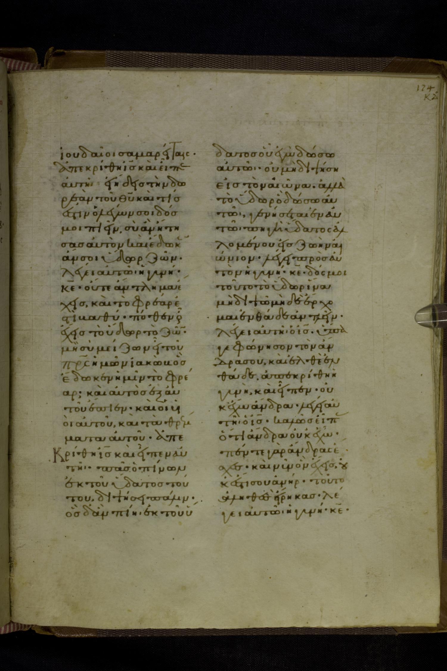 Eleventh century manuscript of the Gospels on parchment; 230 leaves, 2 columns, 25 lines per column. By agreement with the owners of the manuscript, the images posted online are 100dpi. For recent digital images, visit BML Online.