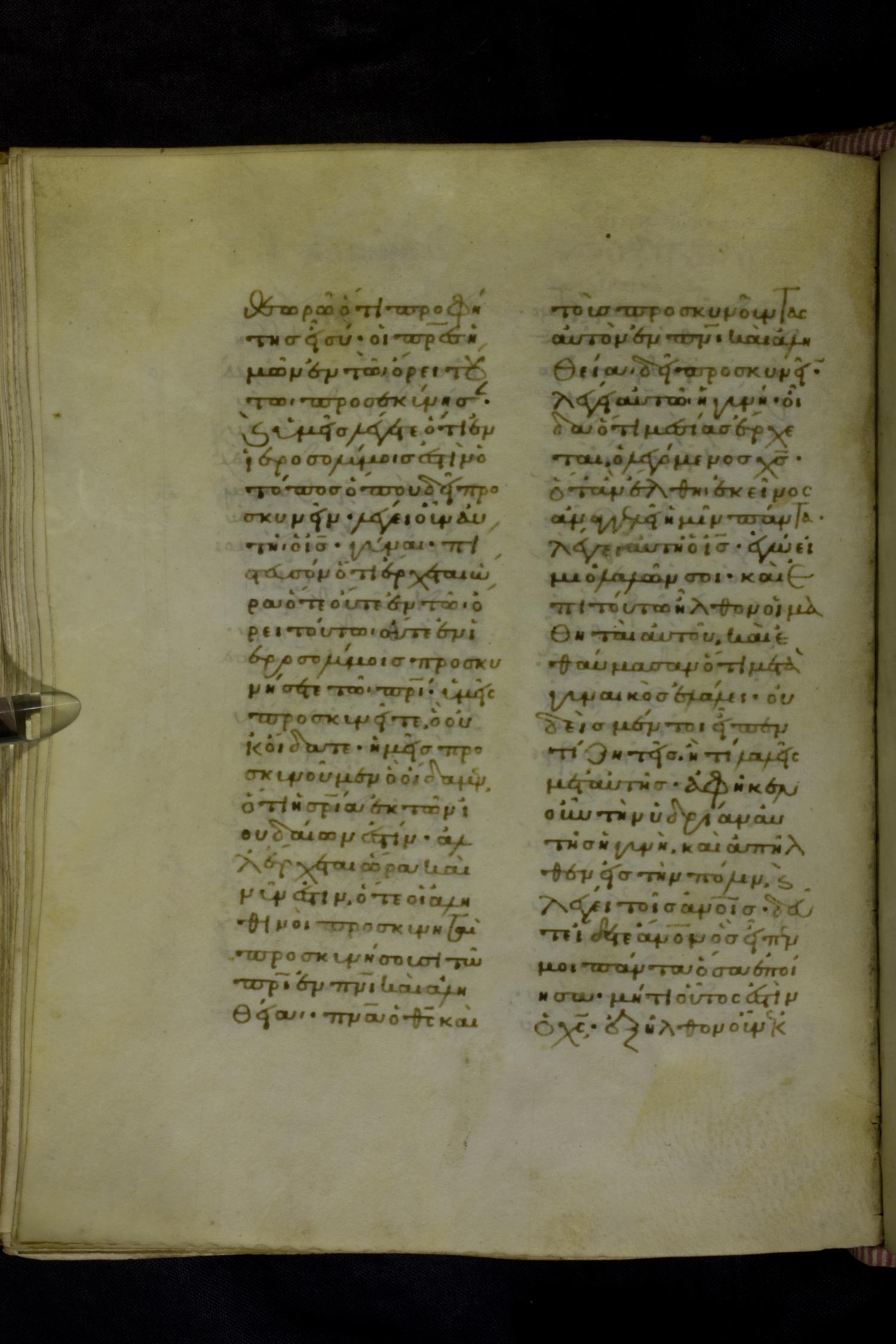 Eleventh century manuscript of the Gospels on parchment; 230 leaves, 2 columns, 25 lines per column. By agreement with the owners of the manuscript, the images posted online are 100dpi. For recent digital images, visit BML Online.