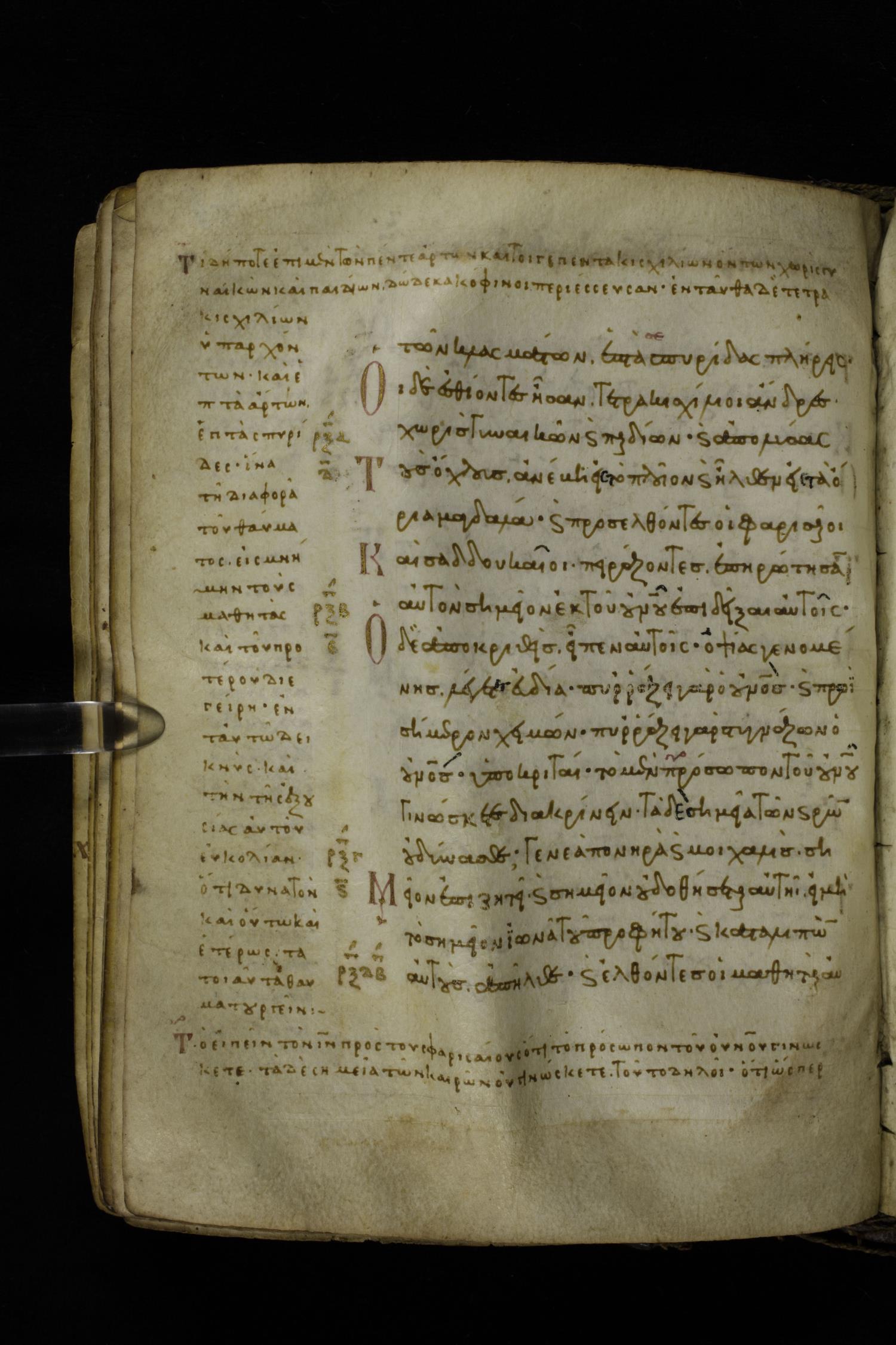 Eleventh century minuscule of the Gospels with commentary on parchment; 289 leaves, single column, 15-17 lines per column. Images were taken at the Hellenic Parliament Library in Athens.