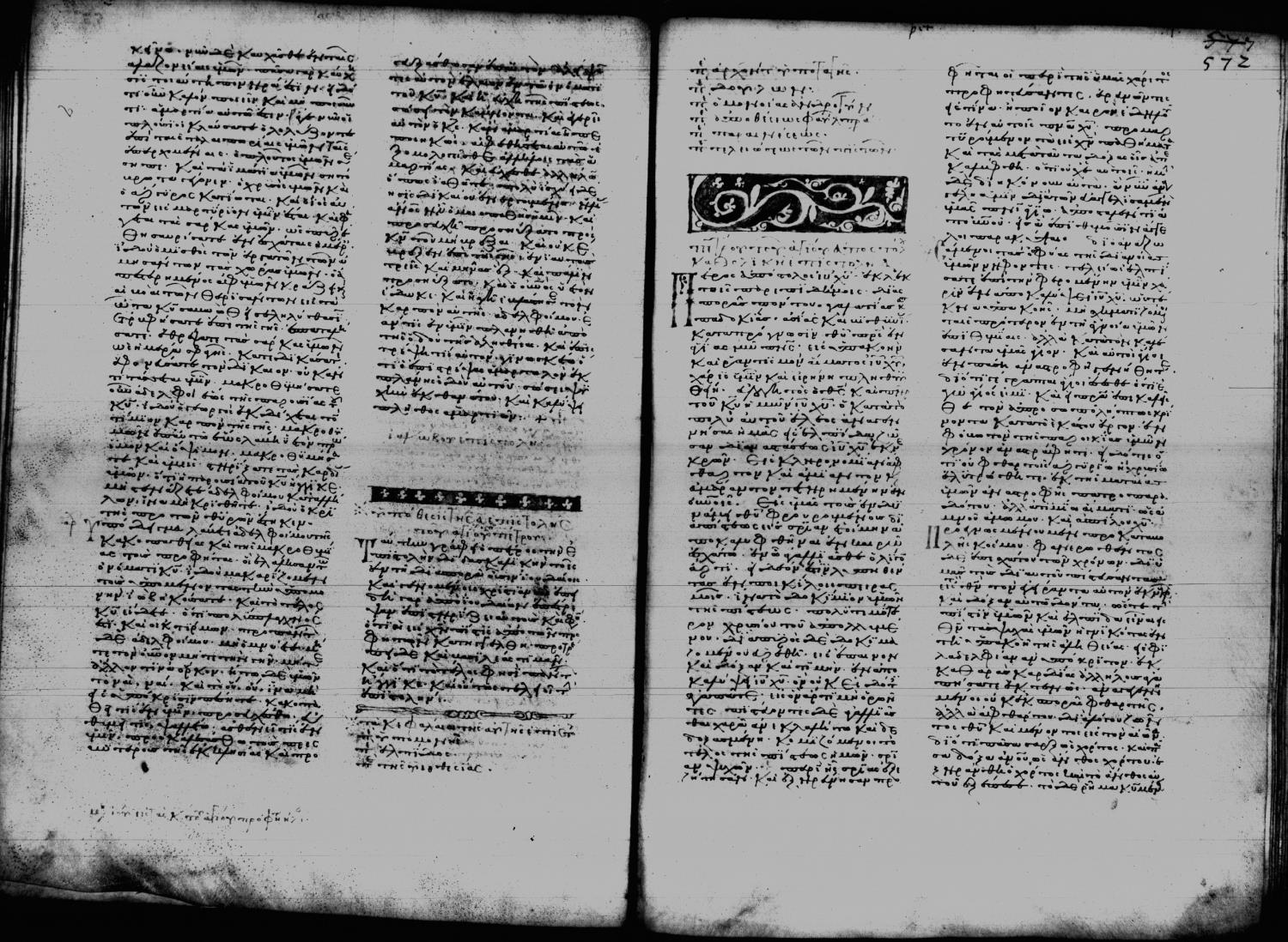Thirteenth century minuscule of the Gospels, Apostolos, Paul, and Revelation (complete New Testament, with the Old Testament) on parchment; 138 leaves, 2 columns, 50-52 lines per column. The digital microfilm images were generously donated to CSNTM.