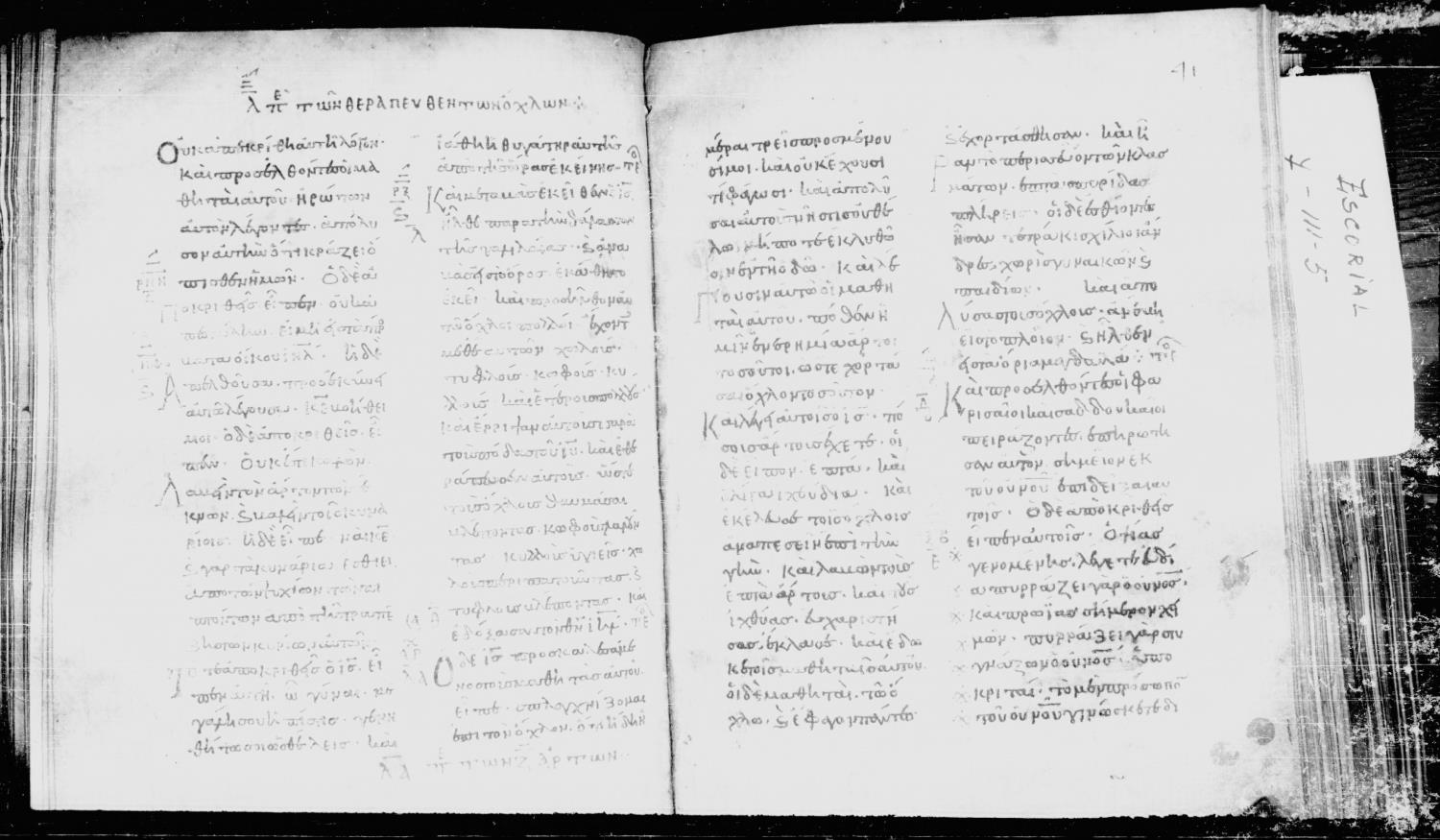 Eleventh century minuscule (dated to 1013) of the Gospels on parchment; 218 leaves, 2 columns, 24 lines per column. Digital images are from microfilm.