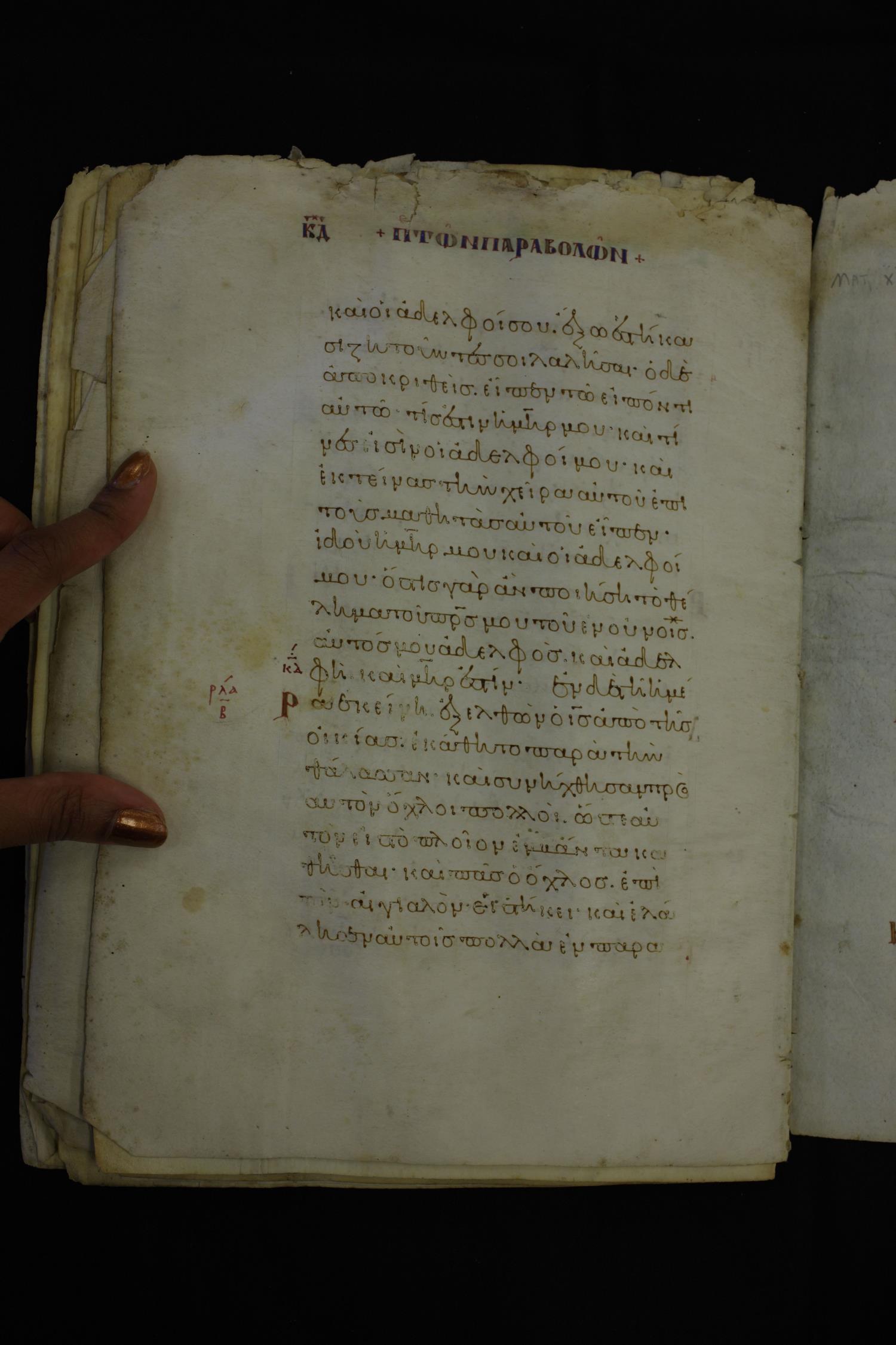 καὶ ἐκτείνας τὴν χεῖρα αὐτοῦ ἐπὶ τοὺς μαθητὰς αὐτοῦ εἶπεν Ἰδοὺ ἡ μήτηρ μου καὶ οἱ ἀδελφοί μου·