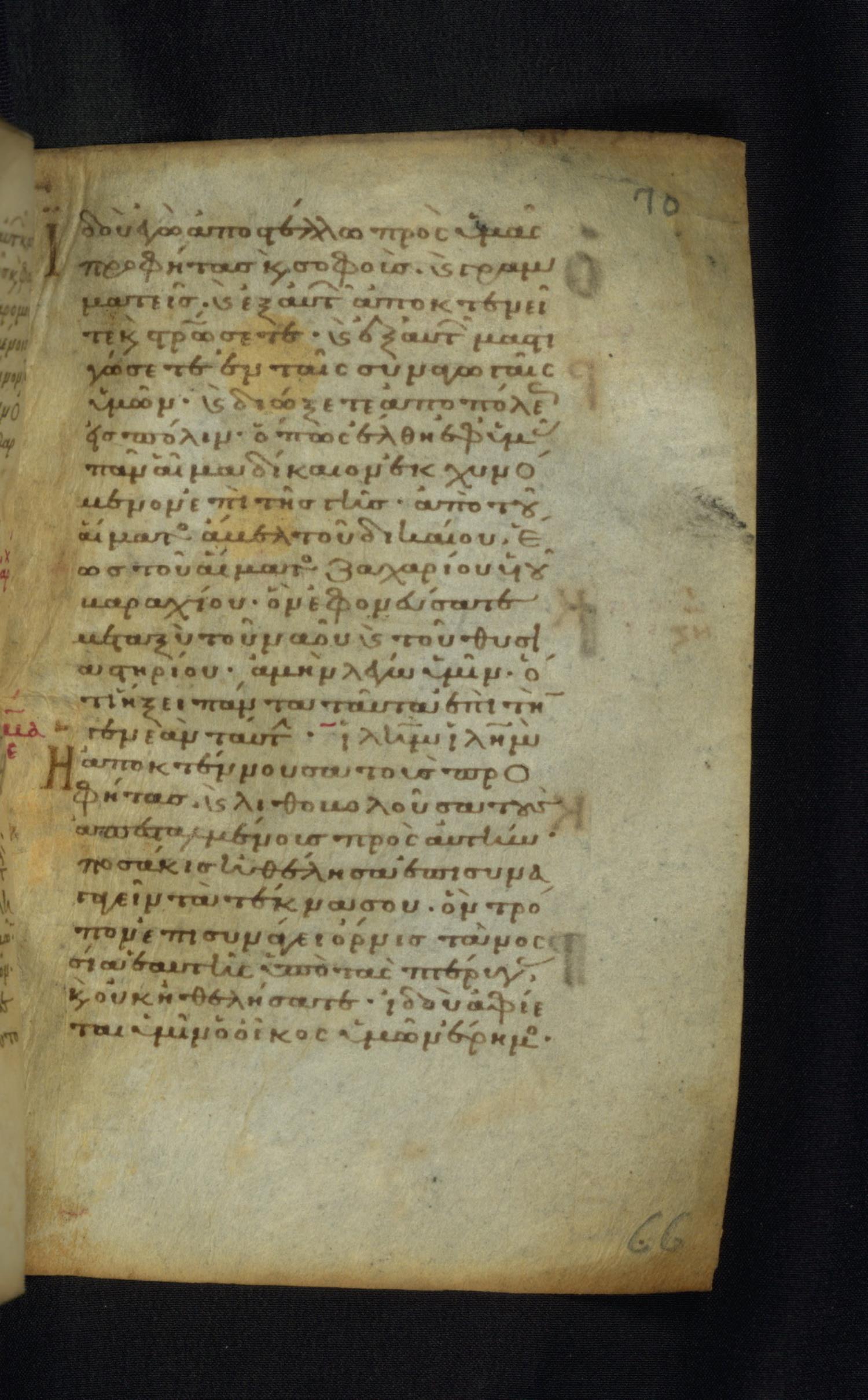 ὅπως ἔλθῃ ἐφ´ ὑμᾶς πᾶν αἷμα δίκαιον ἐκχυννόμενον ἐπὶ τῆς γῆς ἀπὸ τοῦ αἵματος Ἅβελ τοῦ δικαίου ἕως τοῦ αἵματος Ζαχαρίου υἱοῦ Βαραχίου, ὃν ἐφονεύσατε μεταξὺ τοῦ ναοῦ καὶ τοῦ θυσιαστηρίου.