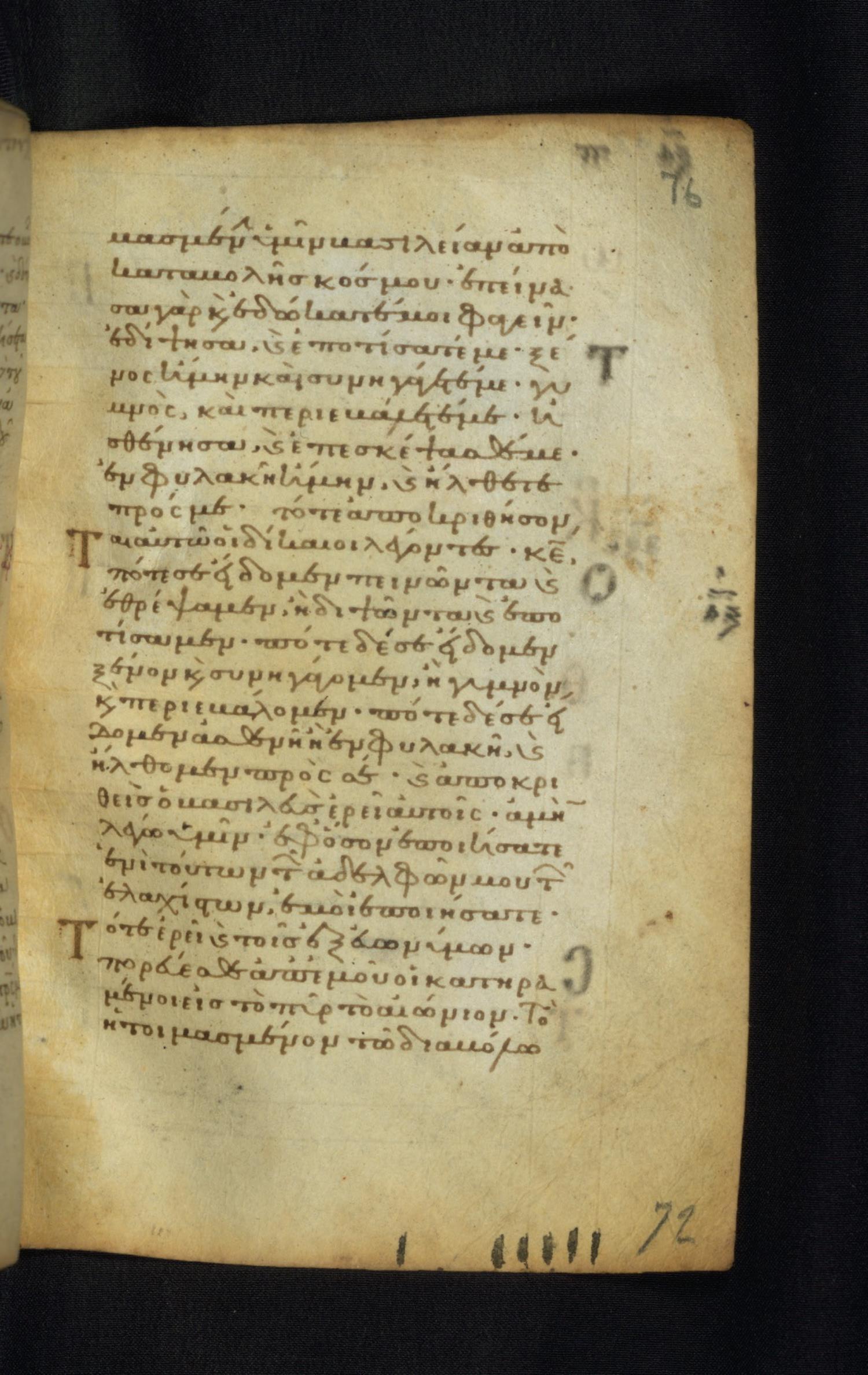 Eleventh century minuscule of the Gospels on parchment. 291 leaves; 1 column per page; 25 lines per column. Images are made available by the Walters Art Museum according to Creative Commons Attribution Unported 3.0.