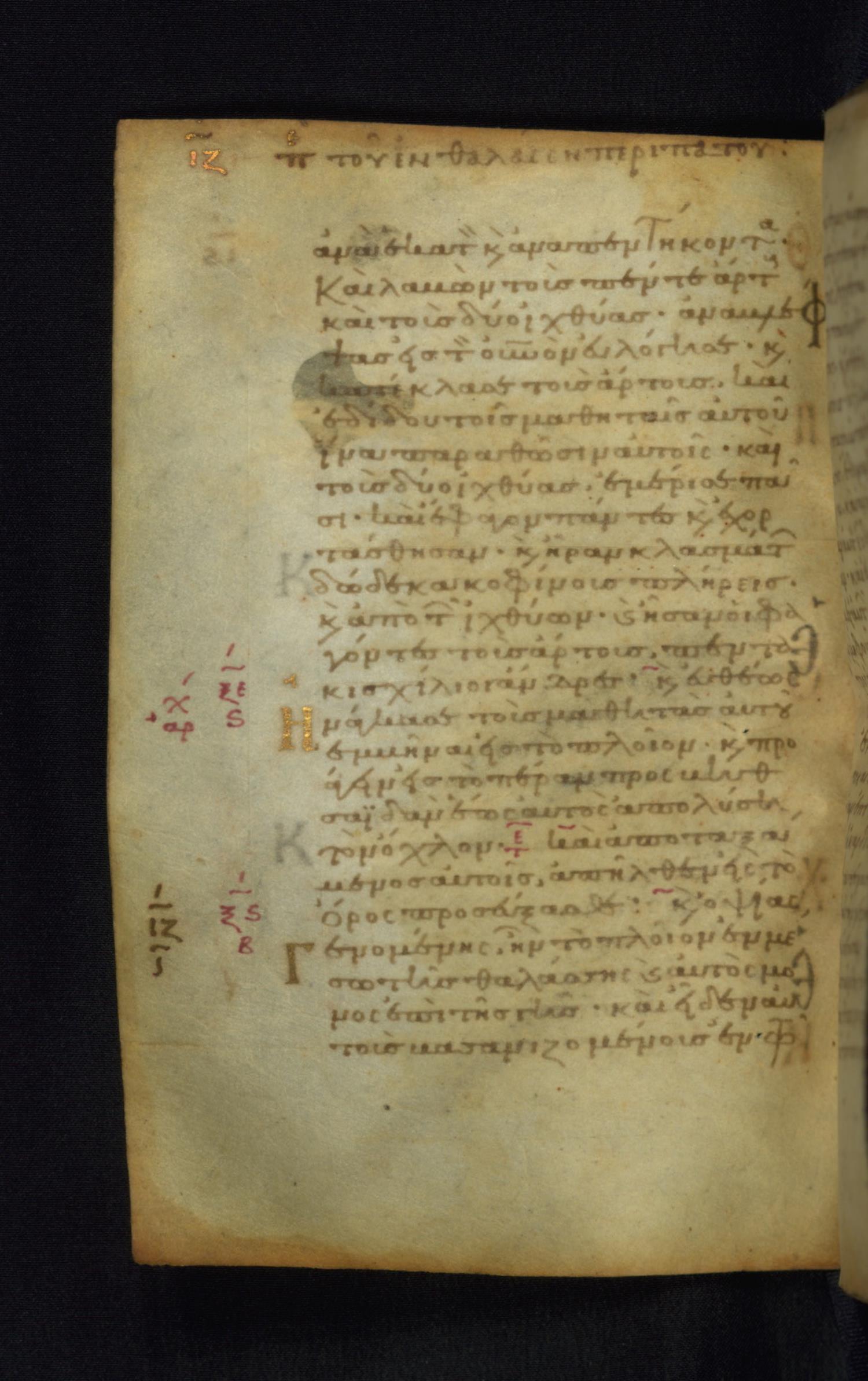 καὶ ὀψίας γενομένης ἦν τὸ πλοῖον ἐν μέσῳ τῆς θαλάσσης, καὶ αὐτὸς μόνος ἐπὶ τῆς γῆς.
