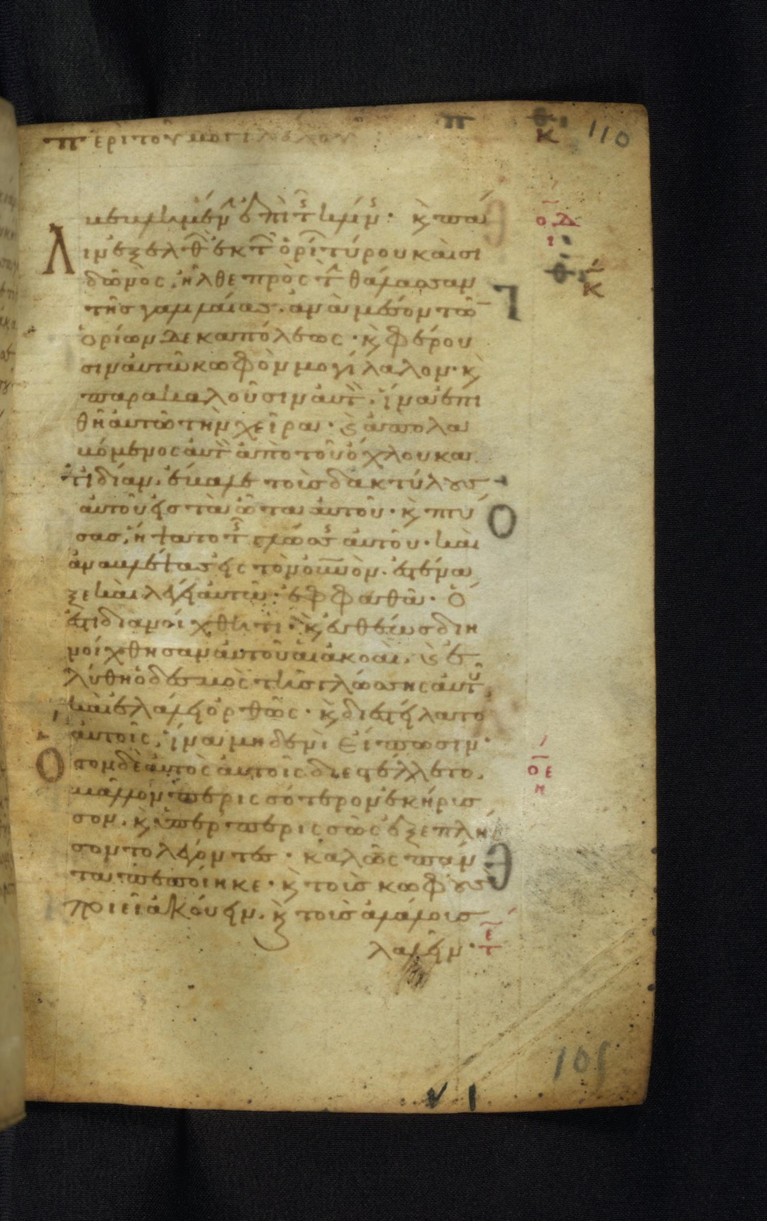Eleventh century minuscule of the Gospels on parchment. 291 leaves; 1 column per page; 25 lines per column. Images are made available by the Walters Art Museum according to Creative Commons Attribution Unported 3.0.
