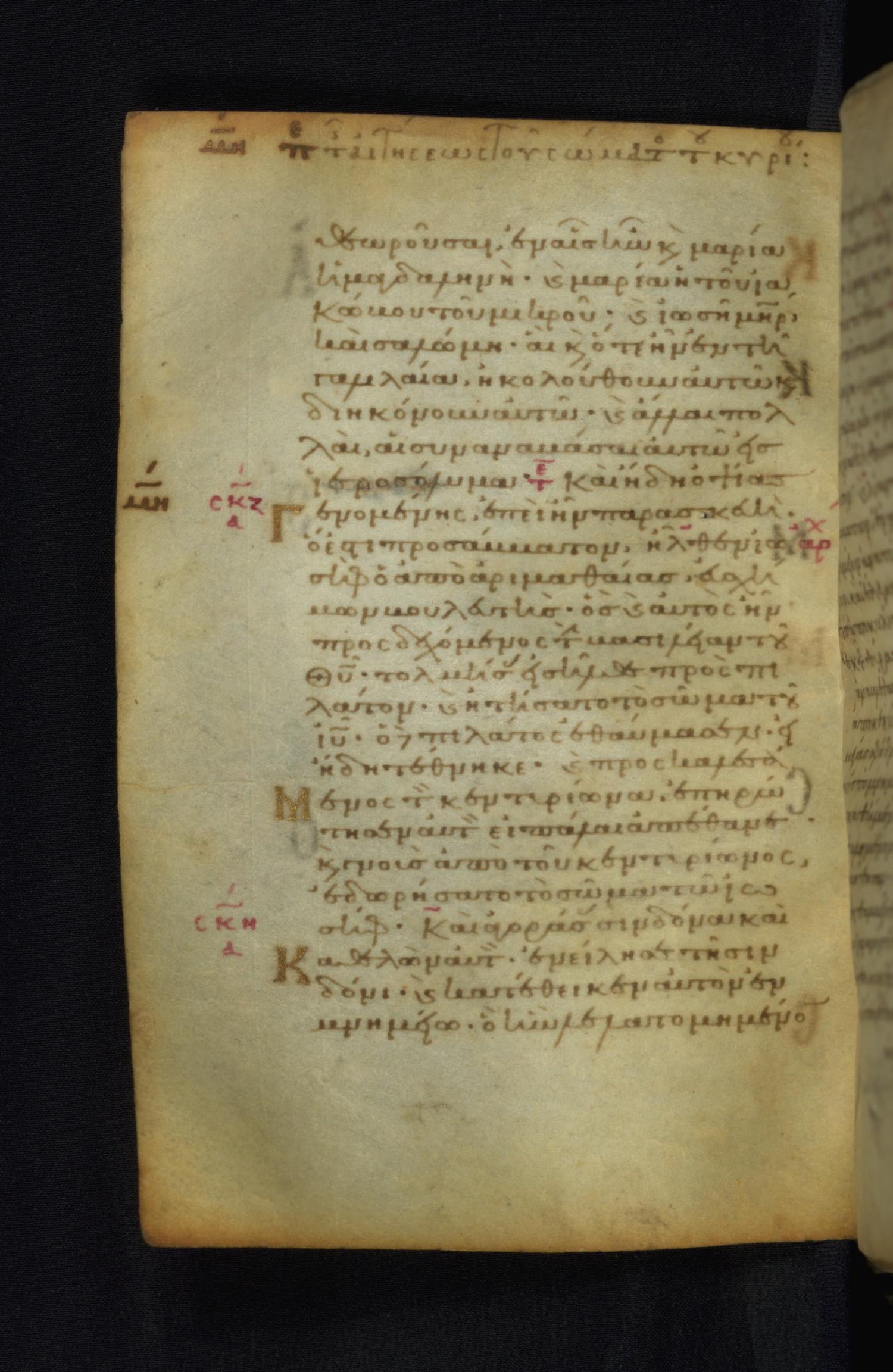 Eleventh century minuscule of the Gospels on parchment. 291 leaves; 1 column per page; 25 lines per column. Images are made available by the Walters Art Museum according to Creative Commons Attribution Unported 3.0.
