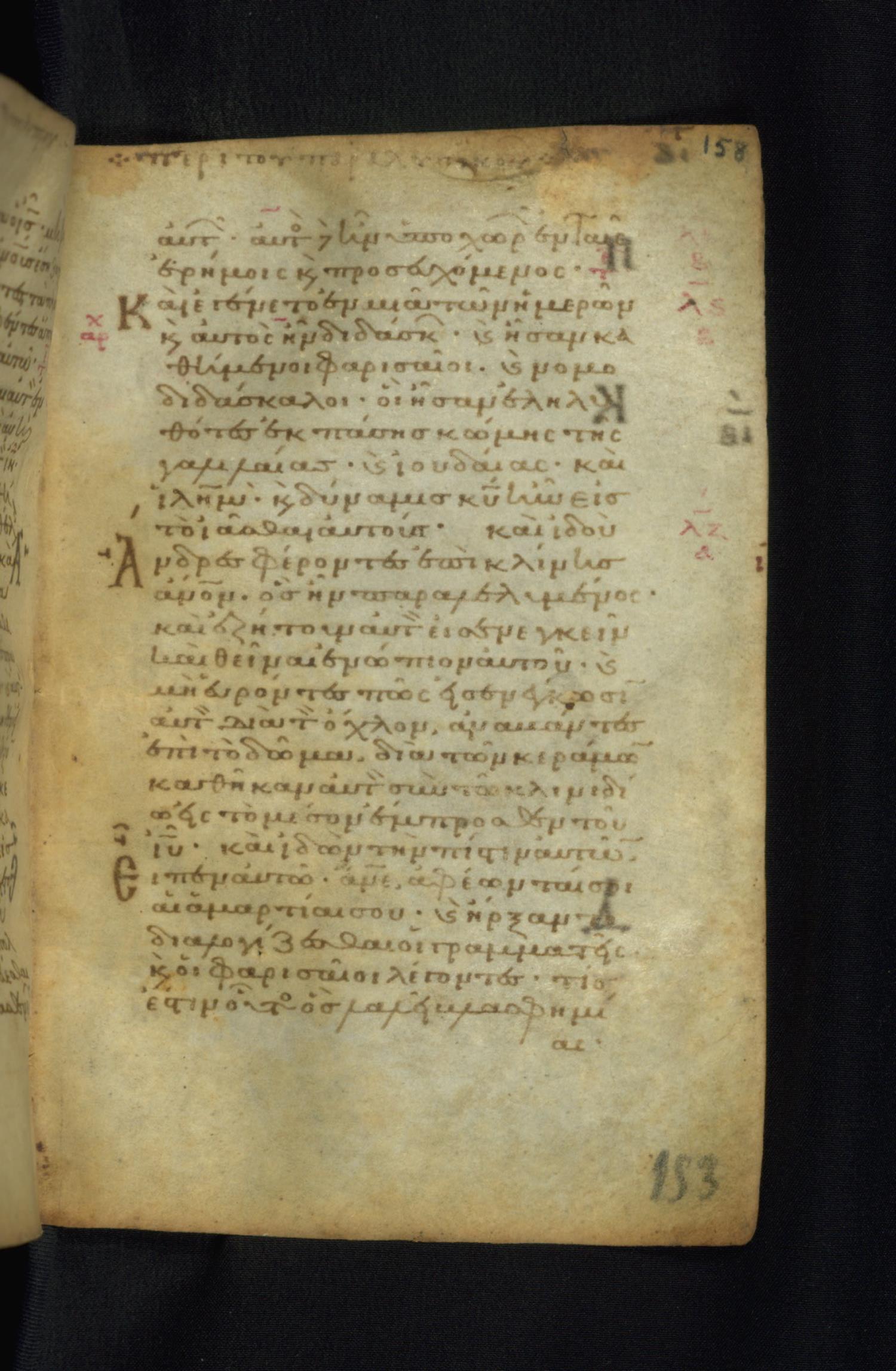 Eleventh century minuscule of the Gospels on parchment. 291 leaves; 1 column per page; 25 lines per column. Images are made available by the Walters Art Museum according to Creative Commons Attribution Unported 3.0.