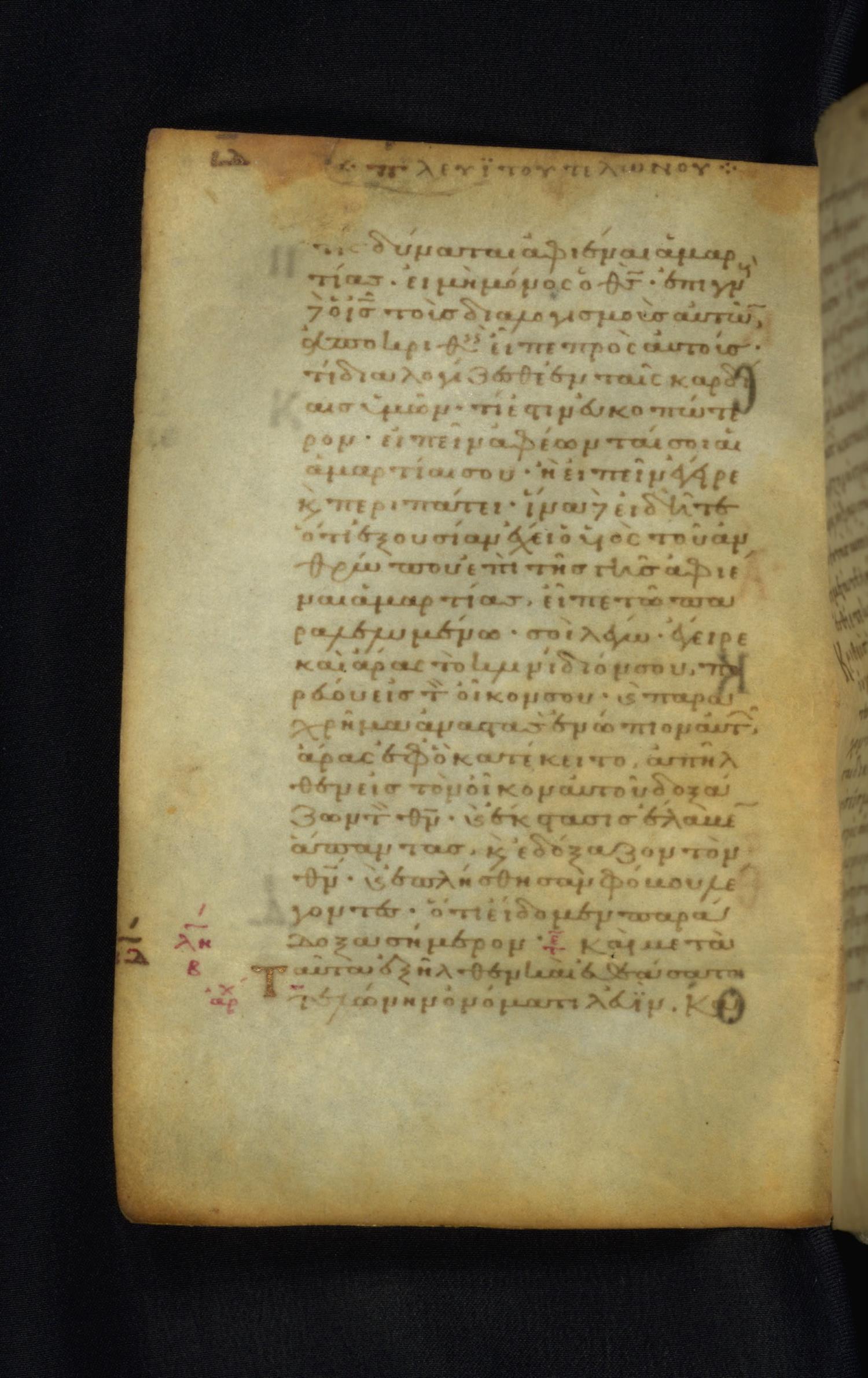 ἵνα δὲ εἰδῆτε ὅτι ὁ υἱὸς τοῦ ἀνθρώπου ἐξουσίαν ἔχει ἐπὶ τῆς γῆς ἀφιέναι ἁμαρτίας εἶπεν τῷ παραλελυμένῳ Σοὶ λέγω, ἔγειρε καὶ ἄρας τὸ κλινίδιόν σου πορεύου εἰς τὸν οἶκόν σου.
