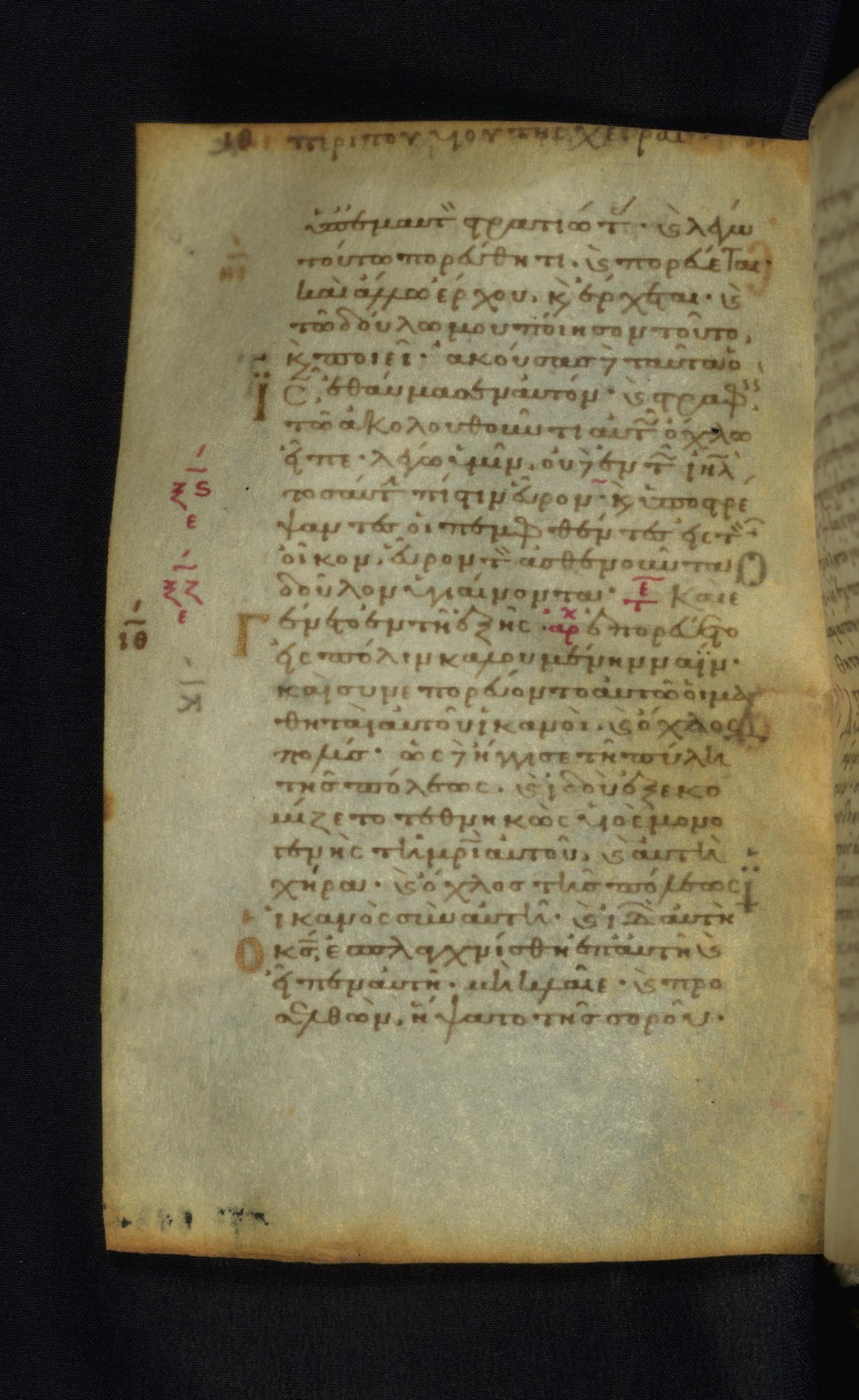 Eleventh century minuscule of the Gospels on parchment. 291 leaves; 1 column per page; 25 lines per column. Images are made available by the Walters Art Museum according to Creative Commons Attribution Unported 3.0.