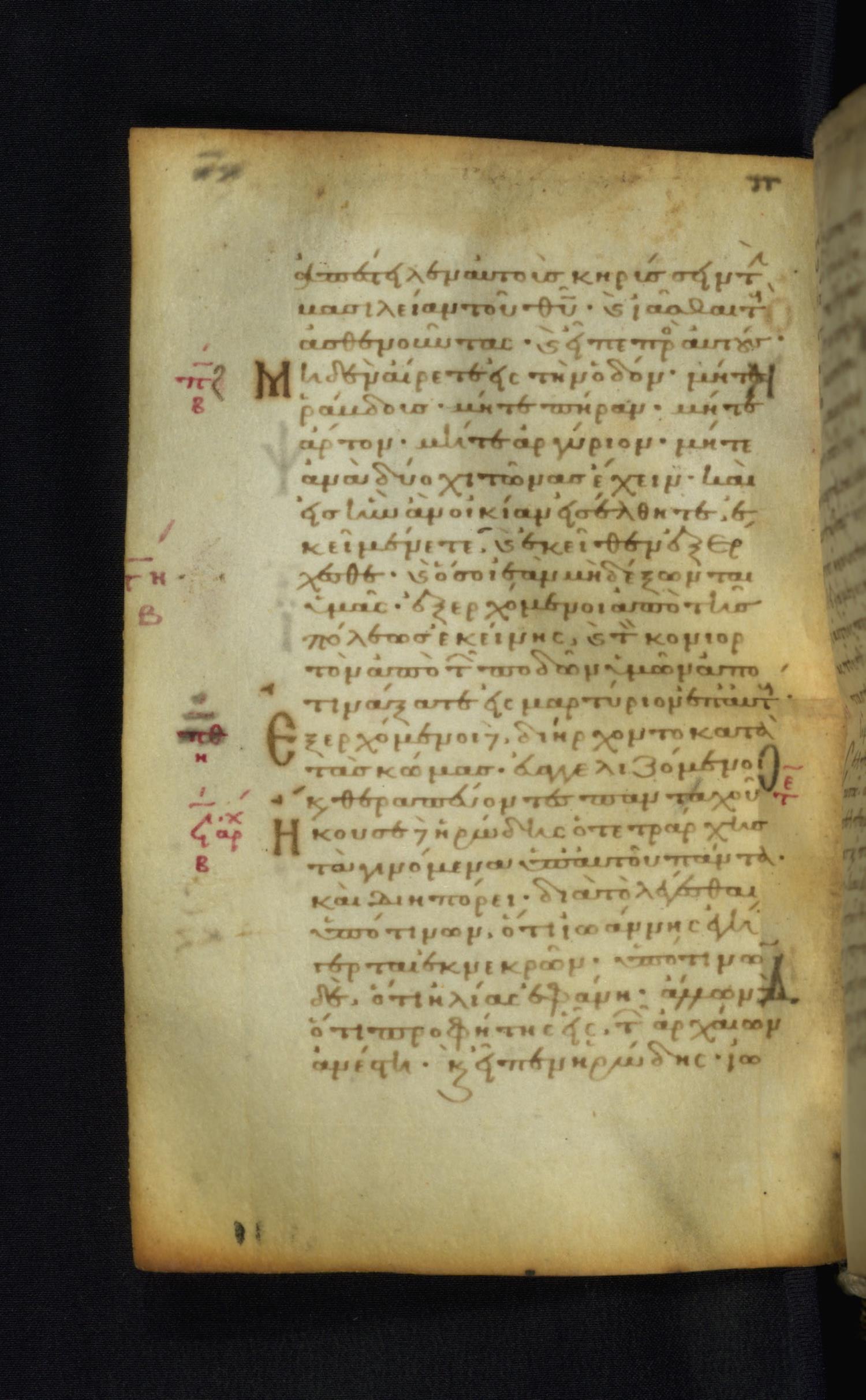 Eleventh century minuscule of the Gospels on parchment. 291 leaves; 1 column per page; 25 lines per column. Images are made available by the Walters Art Museum according to Creative Commons Attribution Unported 3.0.