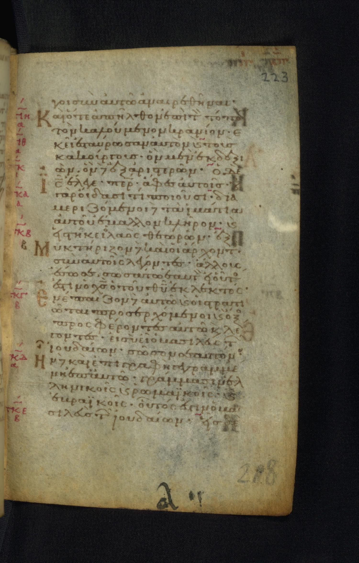 Eleventh century minuscule of the Gospels on parchment. 291 leaves; 1 column per page; 25 lines per column. Images are made available by the Walters Art Museum according to Creative Commons Attribution Unported 3.0.