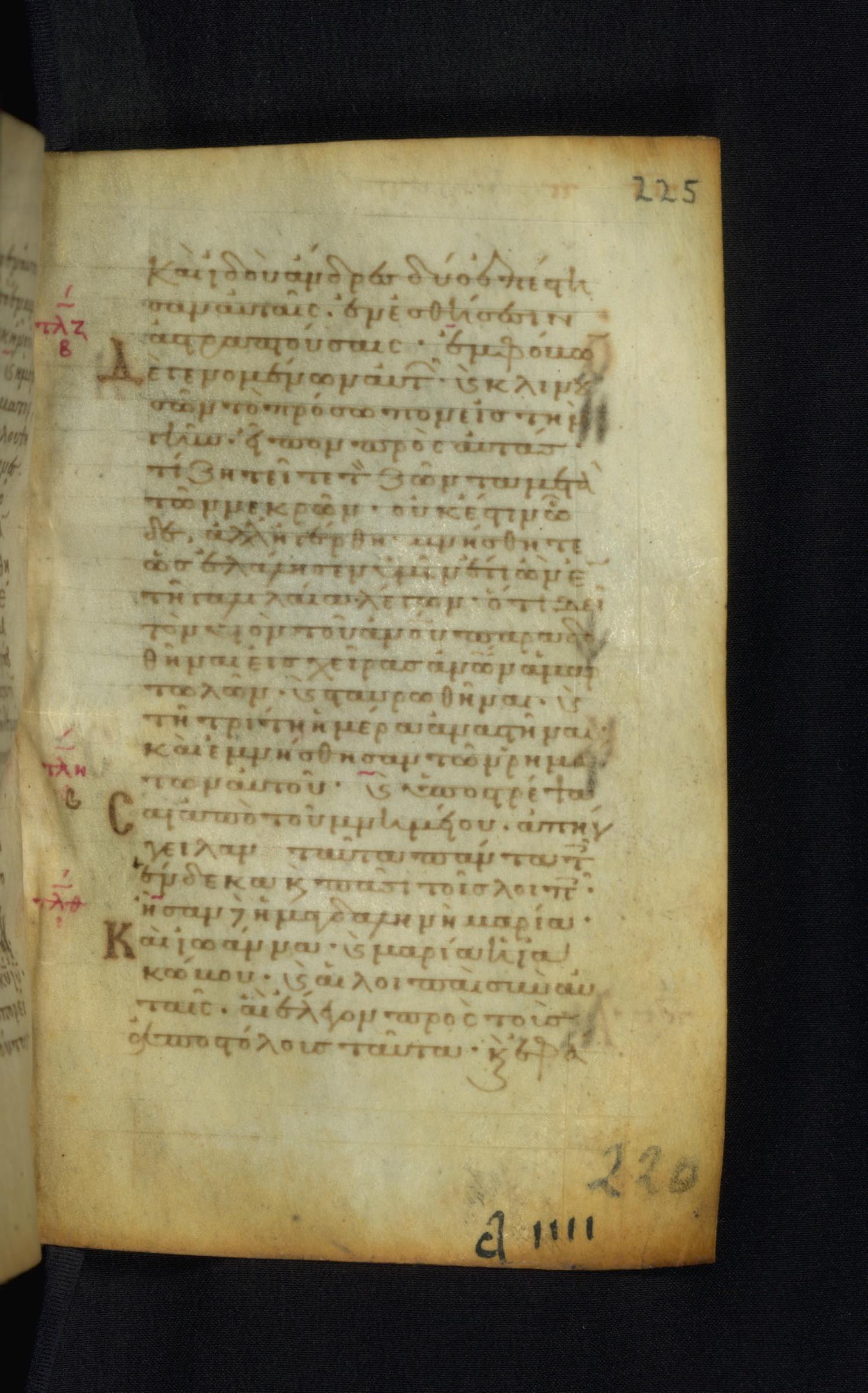 Eleventh century minuscule of the Gospels on parchment. 291 leaves; 1 column per page; 25 lines per column. Images are made available by the Walters Art Museum according to Creative Commons Attribution Unported 3.0.