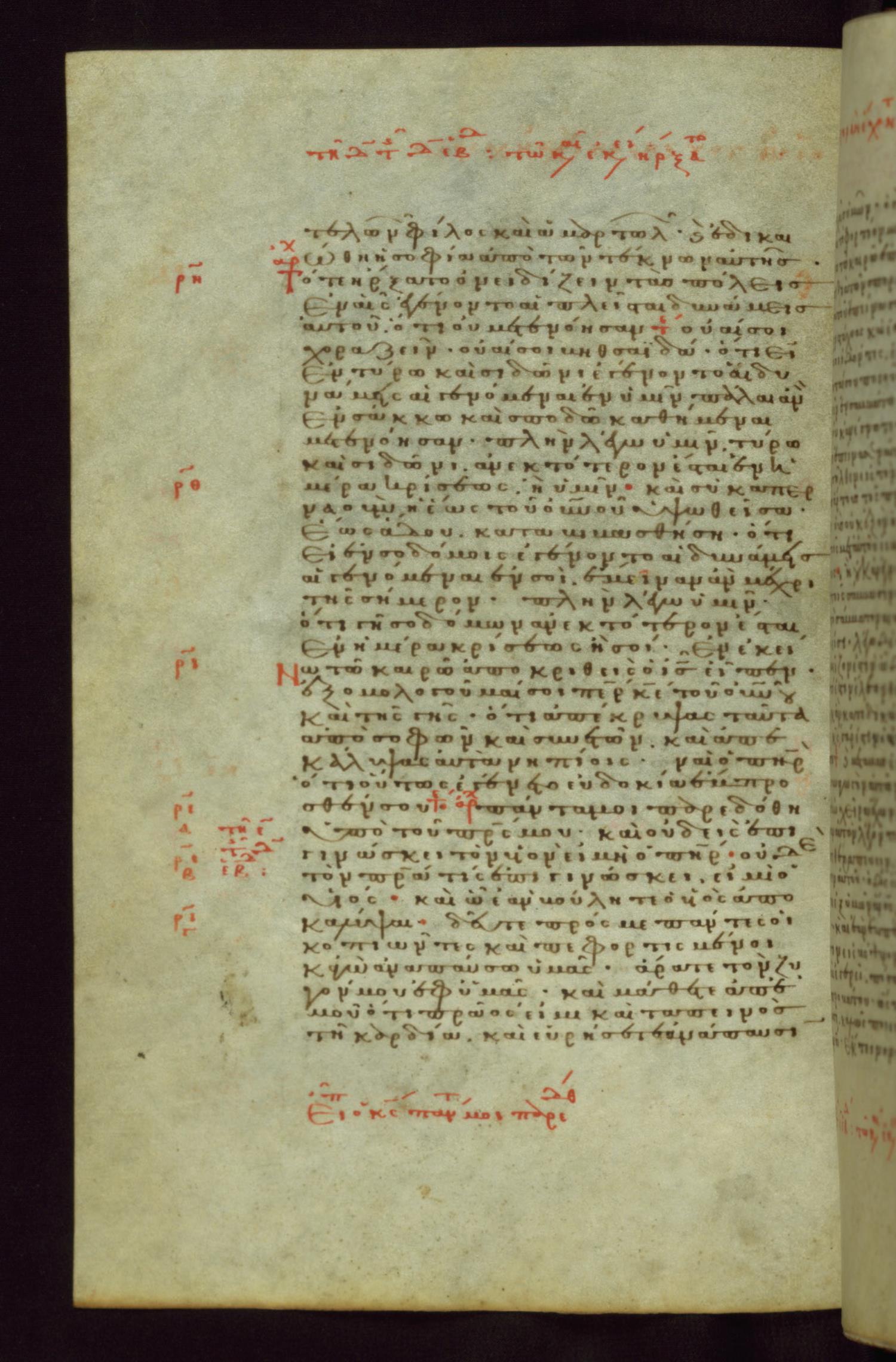 Thirteenth to fourteenth century minuscule of the Gospels, Acts, and Paul on parchment. 352 leaves; 1 column per page; 36 lines per column. Images are from the Walters Art Museum and are made available by Creative Commons Attribution Unported 3.0.