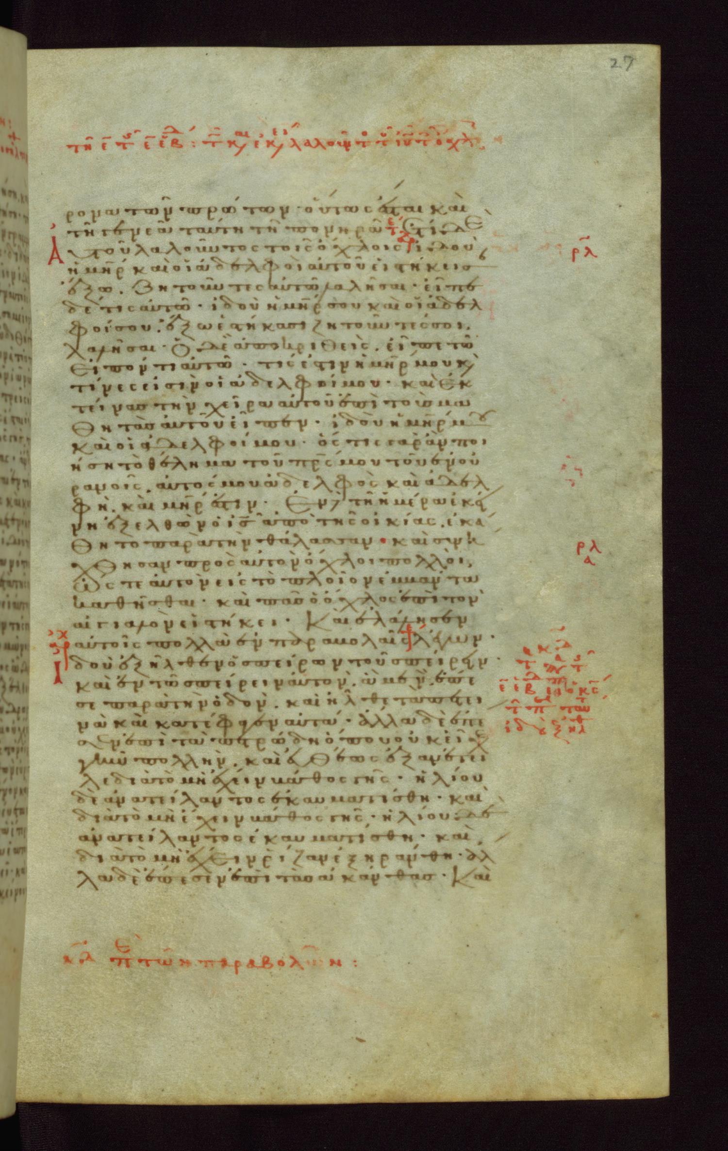 Thirteenth to fourteenth century minuscule of the Gospels, Acts, and Paul on parchment. 352 leaves; 1 column per page; 36 lines per column. Images are from the Walters Art Museum and are made available by Creative Commons Attribution Unported 3.0.