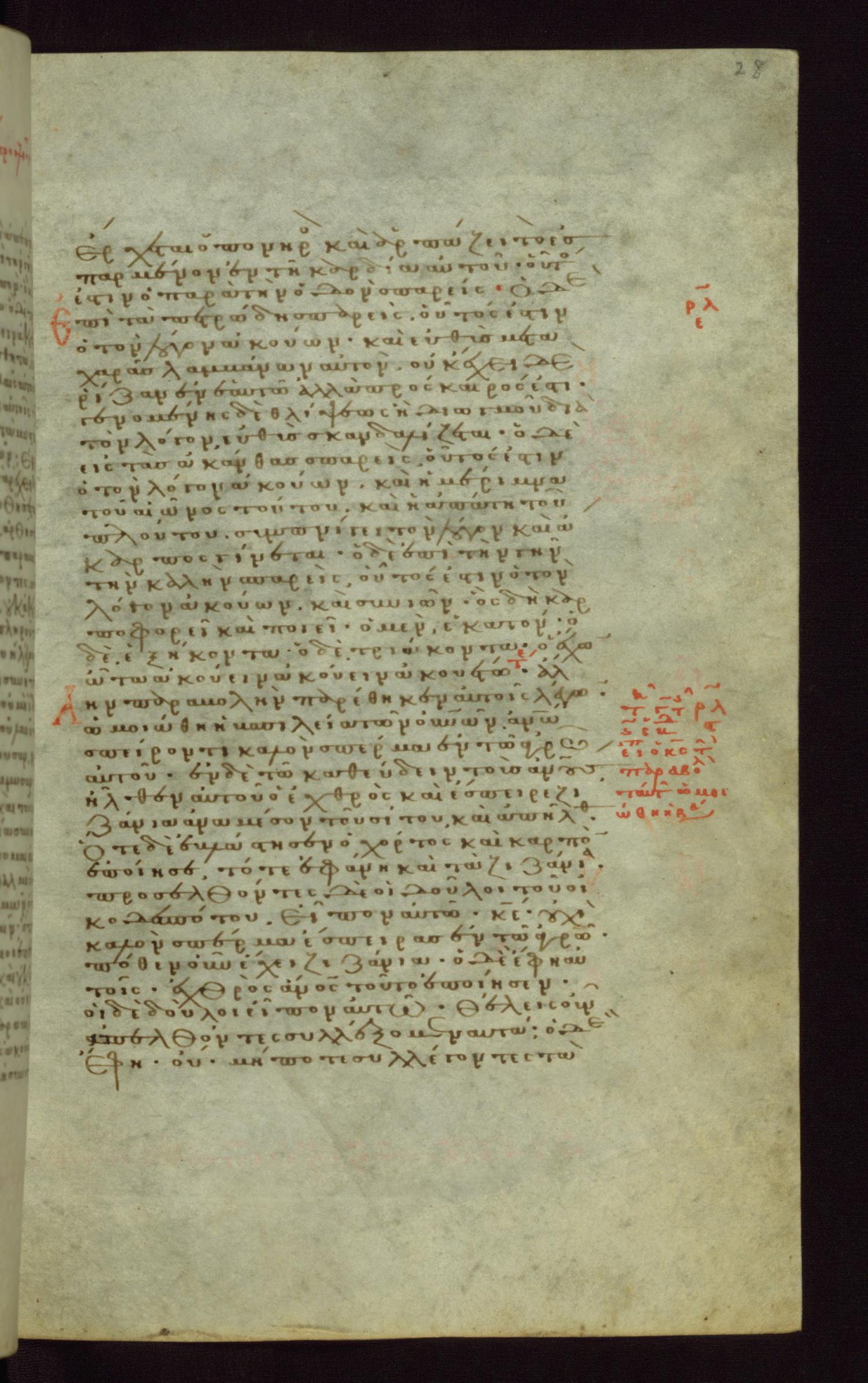 Thirteenth to fourteenth century minuscule of the Gospels, Acts, and Paul on parchment. 352 leaves; 1 column per page; 36 lines per column. Images are from the Walters Art Museum and are made available by Creative Commons Attribution Unported 3.0.