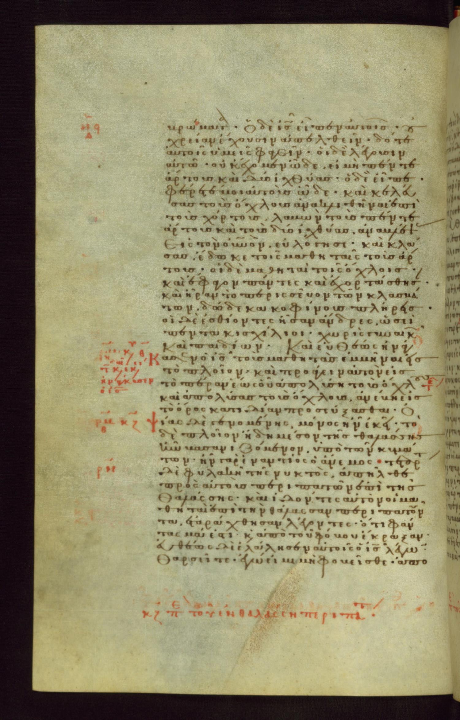 Thirteenth to fourteenth century minuscule of the Gospels, Acts, and Paul on parchment. 352 leaves; 1 column per page; 36 lines per column. Images are from the Walters Art Museum and are made available by Creative Commons Attribution Unported 3.0.