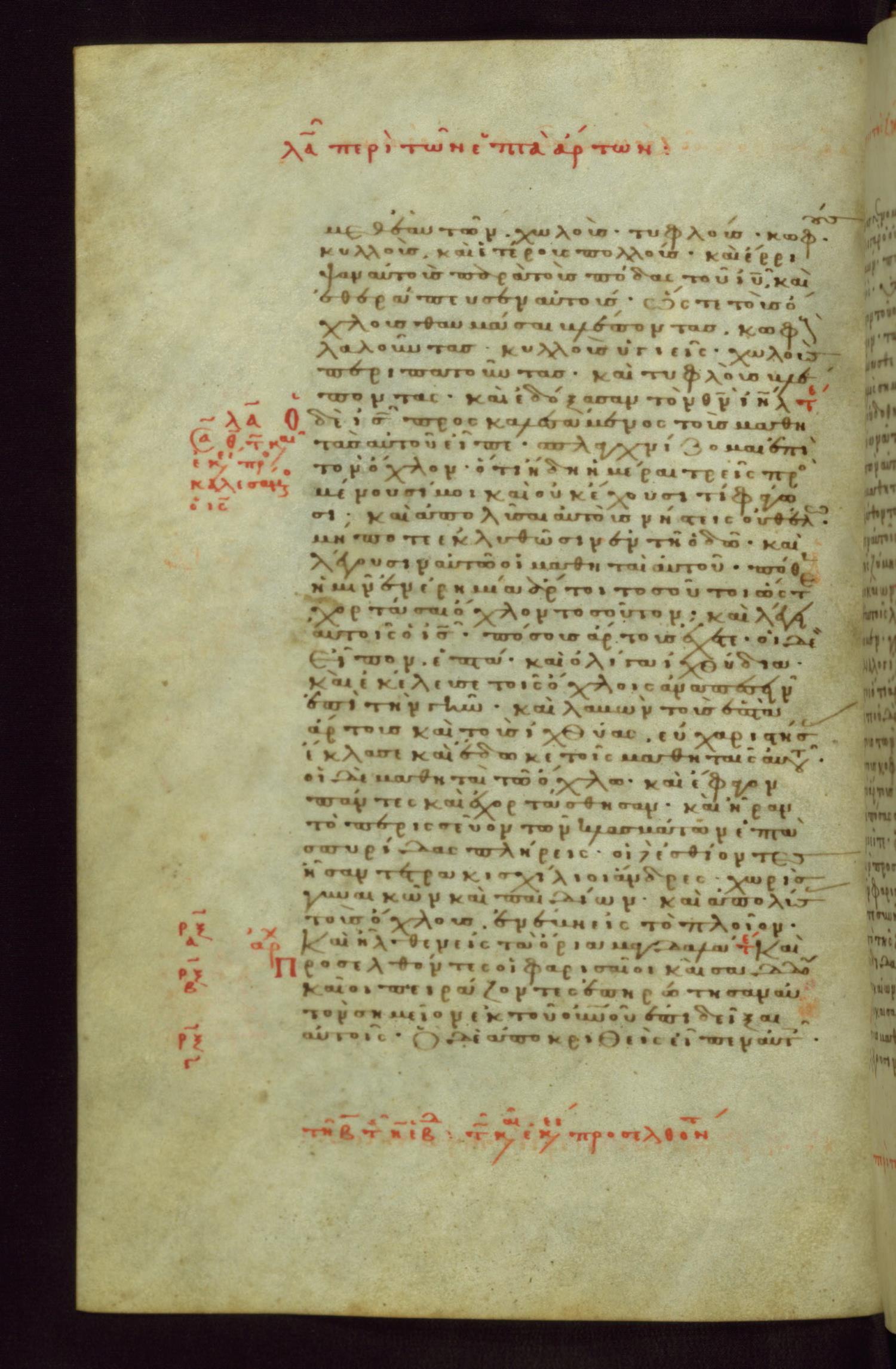 Thirteenth to fourteenth century minuscule of the Gospels, Acts, and Paul on parchment. 352 leaves; 1 column per page; 36 lines per column. Images are from the Walters Art Museum and are made available by Creative Commons Attribution Unported 3.0.