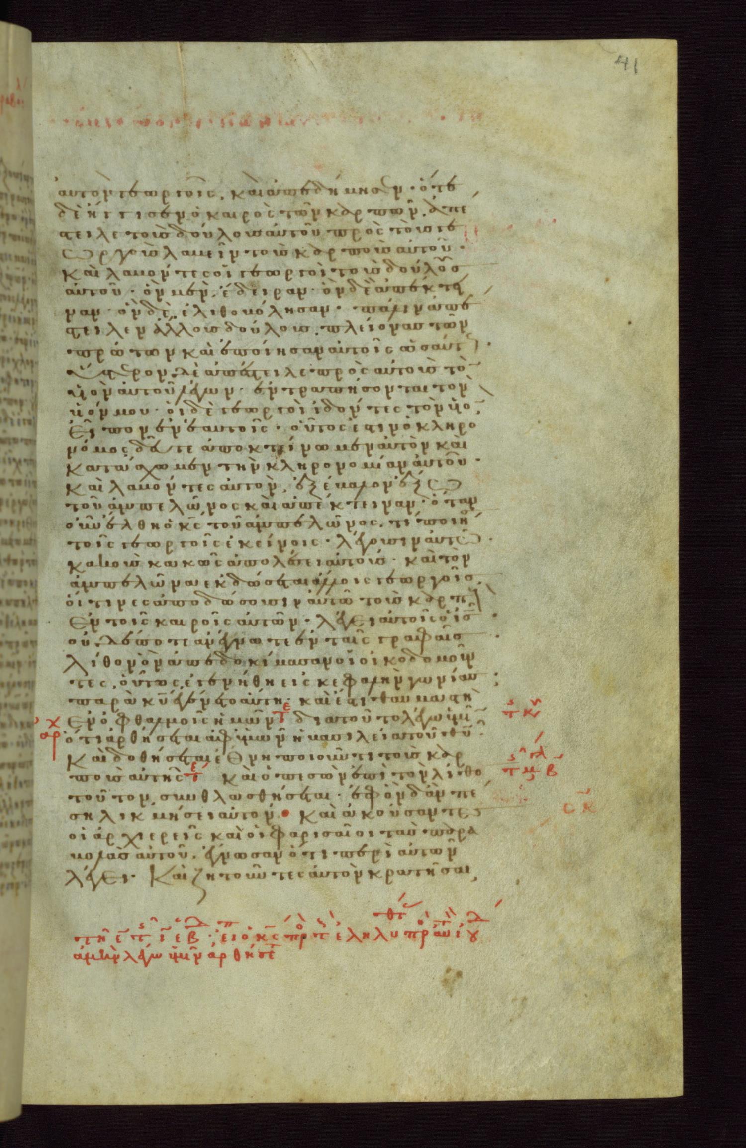 Thirteenth to fourteenth century minuscule of the Gospels, Acts, and Paul on parchment. 352 leaves; 1 column per page; 36 lines per column. Images are from the Walters Art Museum and are made available by Creative Commons Attribution Unported 3.0.