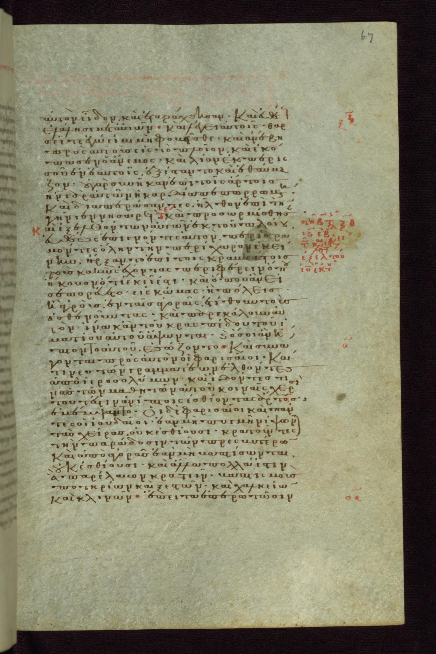 Thirteenth to fourteenth century minuscule of the Gospels, Acts, and Paul on parchment. 352 leaves; 1 column per page; 36 lines per column. Images are from the Walters Art Museum and are made available by Creative Commons Attribution Unported 3.0.