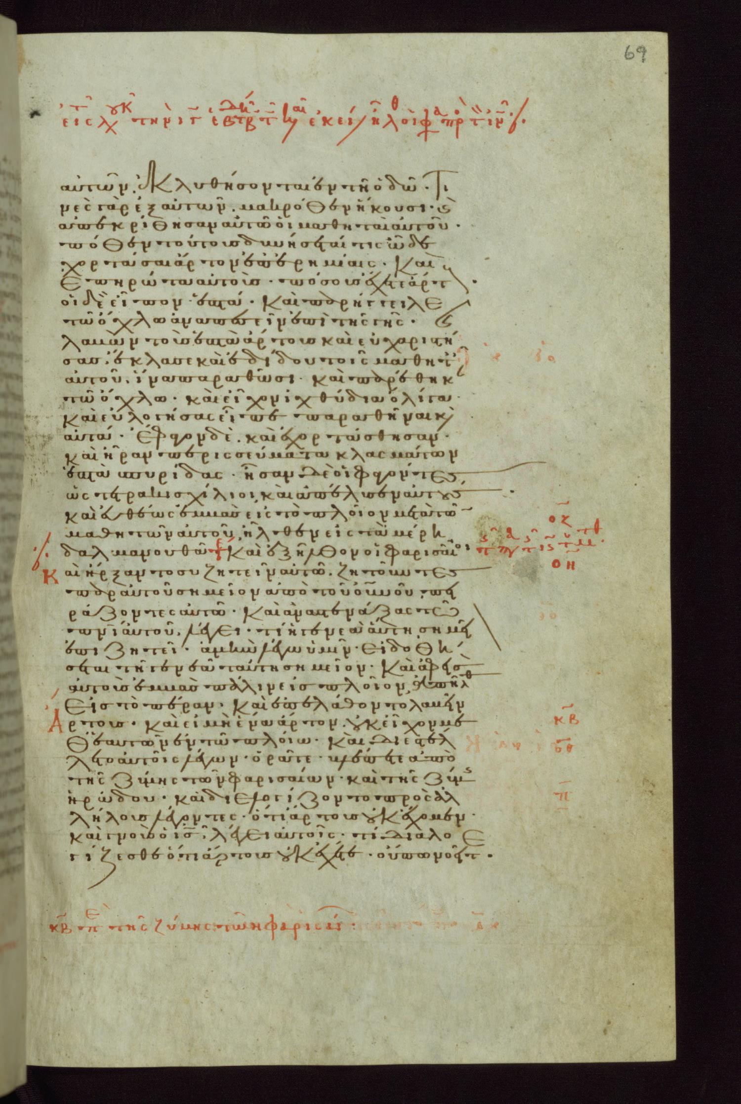 Thirteenth to fourteenth century minuscule of the Gospels, Acts, and Paul on parchment. 352 leaves; 1 column per page; 36 lines per column. Images are from the Walters Art Museum and are made available by Creative Commons Attribution Unported 3.0.