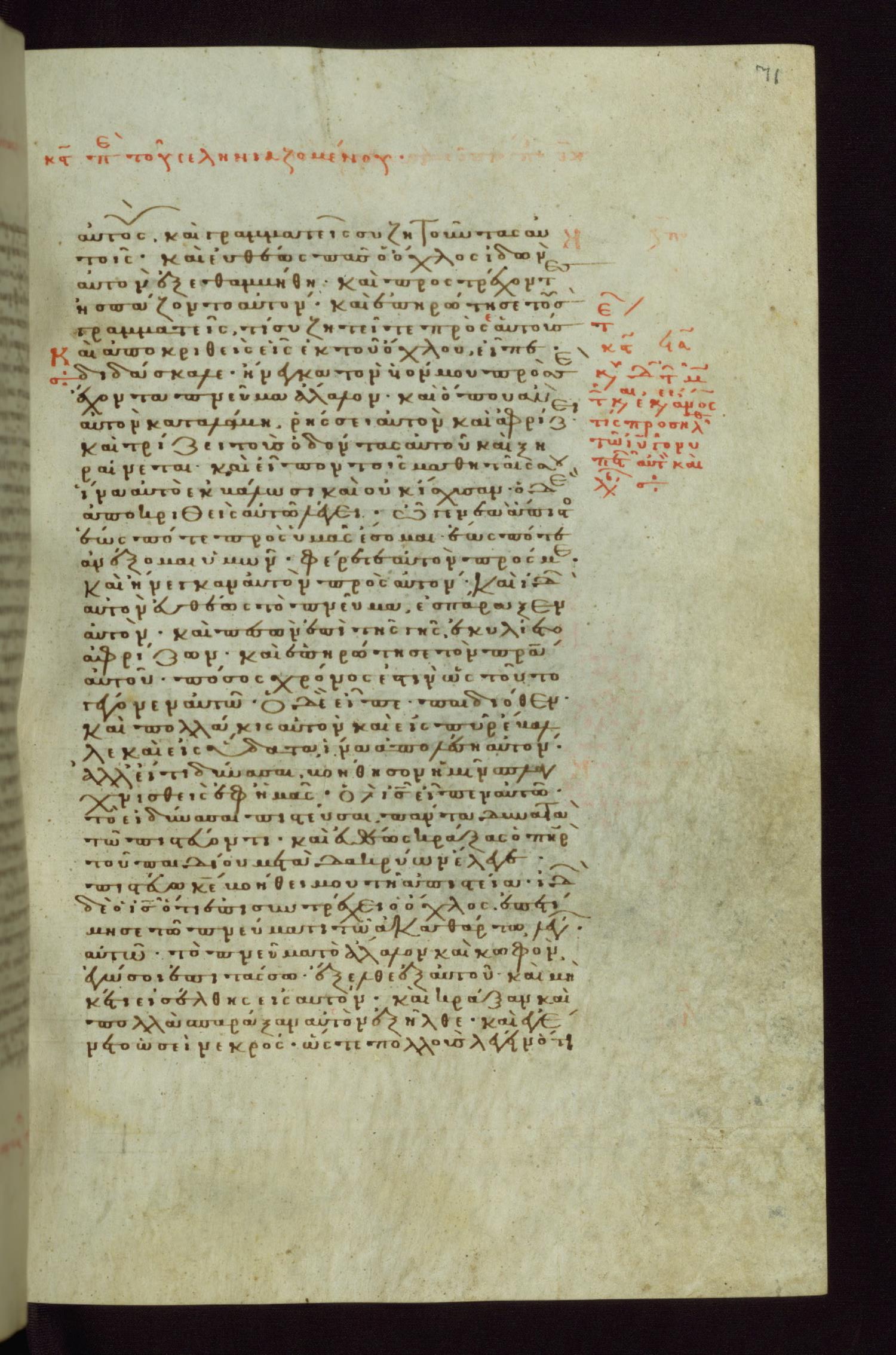 Thirteenth to fourteenth century minuscule of the Gospels, Acts, and Paul on parchment. 352 leaves; 1 column per page; 36 lines per column. Images are from the Walters Art Museum and are made available by Creative Commons Attribution Unported 3.0.